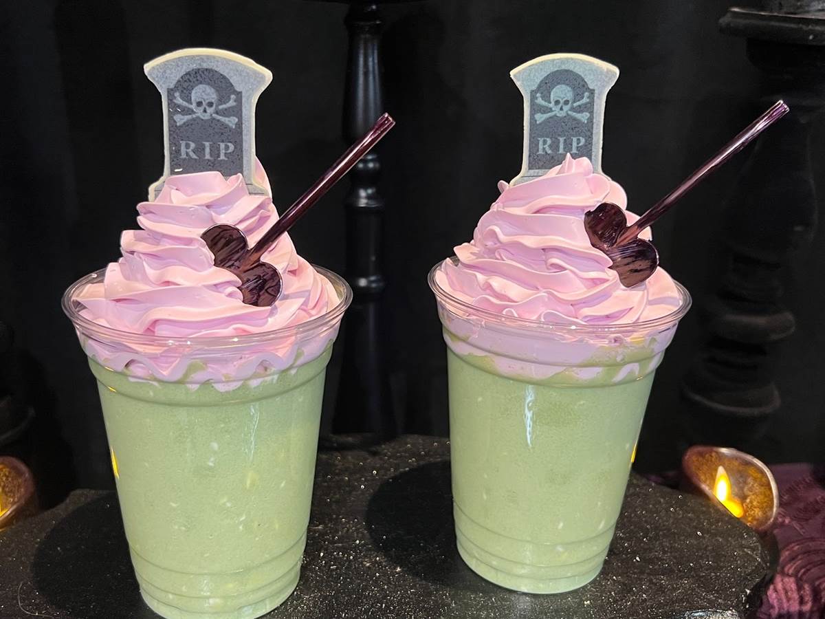 It seems this food tour has hit a dead end at Sleepy Hollow Refreshments in Liberty Square. Themed to The Haunted Mansion, the “Grave Digger Milk Shake" is a blend of coconut and matcha blended soft-serve topped with black cherry whipped cream, a Grave Digger shovel, and chocolate gravestone.