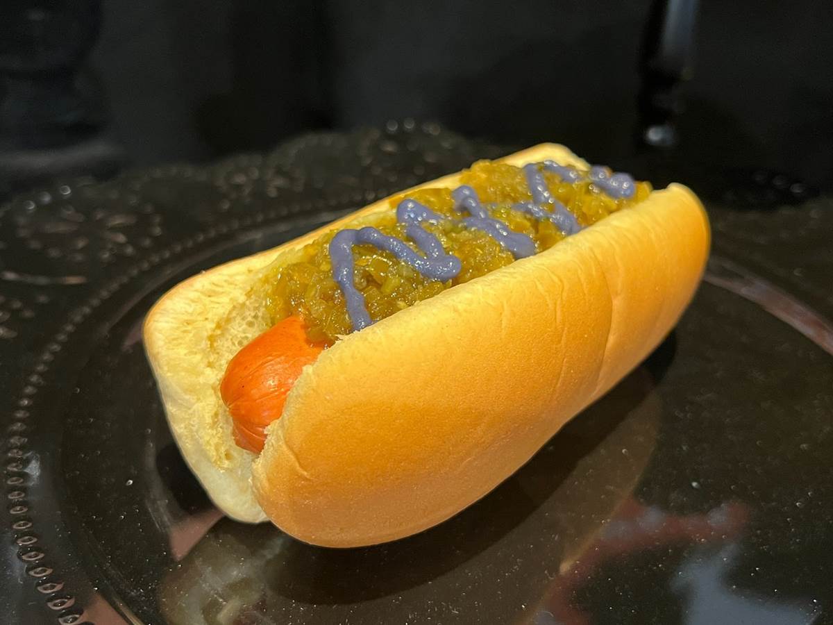 The “Hades Hot Dog" can be found at The Friar’s Nook in Fantasyland. It’s a spicy beef and pork hot dog with Hades’ relish and pickles served with house-made violet mustard.