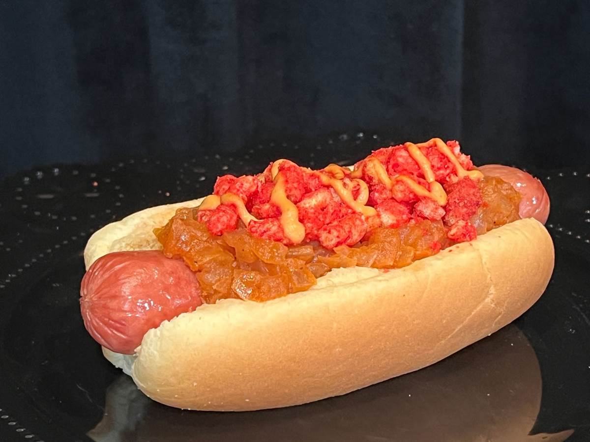 Guests will find the first of two hot dogs themed to the 1997 animated film Hercules at Casey’s Corner. This one is the “Pain and Panic Hot Dog," named after Hades’ henchmen. It’s an all-beef hot dog with sweet and spicy onion relish and sriracha mustard topped with spicy cheese-flavored snacks.