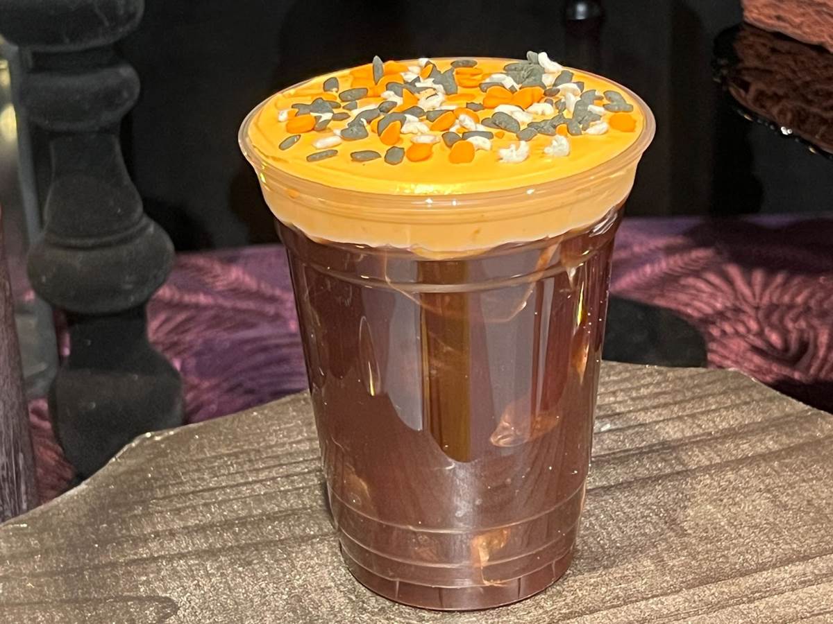 Another brew from the Sanderson Sisters can be found in Fantasyland at the Cheshire Cafe, known as the “Cold Witches Brew Coffee." It’s a French vanilla cold brew with pumpkin spiced foam topped with Halloween sprinkles.