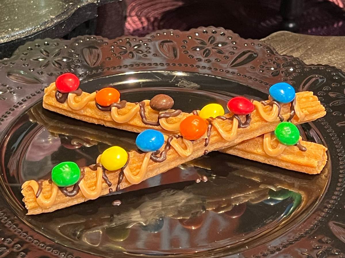 Also at carts near the castle is an “M&M’s Peanut Butter Churro." It’s a classic churro rolled in peanut dust with peanut sauce, chocolate sauce, and M&M’s.