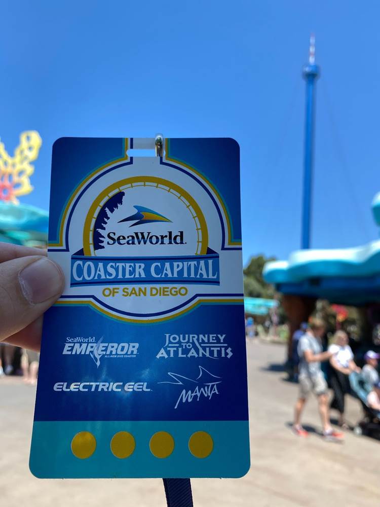 I arrived at SeaWorld San Diego around noon and checked in to receive my Coaster Challenge credential.