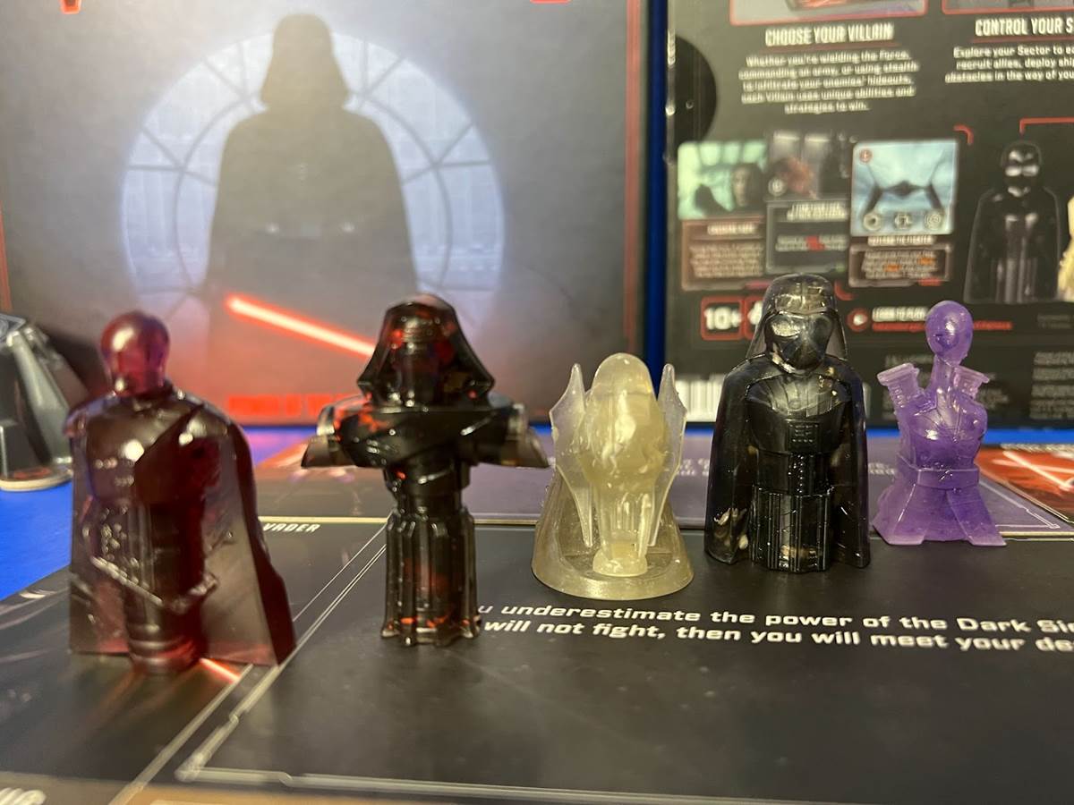 As with all of the Ravensburger Villainous games, a real highlight is the artwork found across the cards and boards. The artists have really captured the visual style of not only the films, but also The Clone Wars animated series. The pawns are always spectacular, but new to me were some speckled pieces. Kylo Ren, for example, has red scattered throughout the plastic.