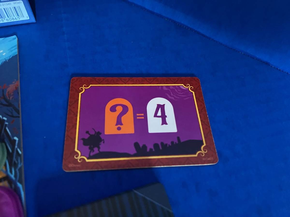 Some of the tombstone numbers contain a question mark. This is what the included tile is used for. In a standard game, a question mark equals the number two. But if you want to make it extra challenging, flip the tile over, and it doubles, giving the Headless Horseman a further advantage.
