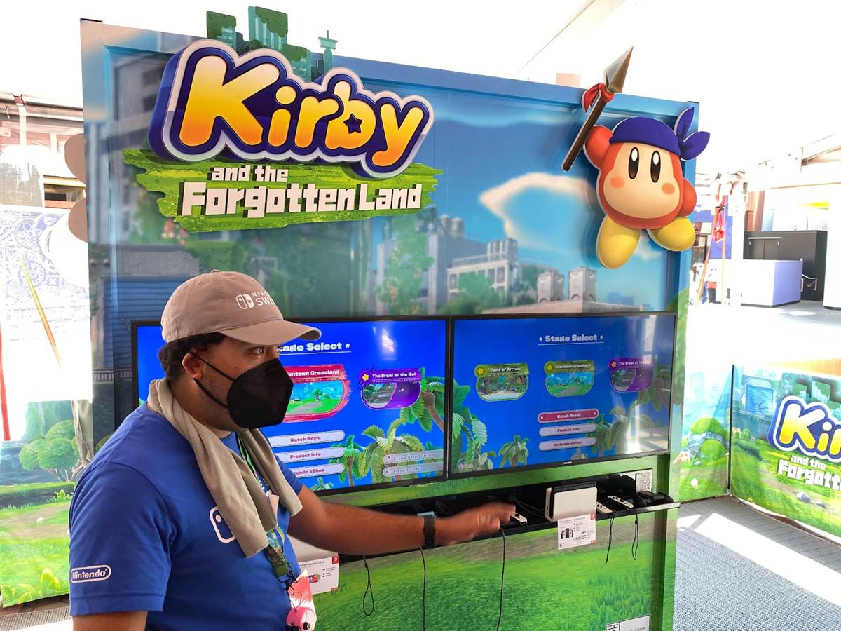 Once participants have finished their experience with the three games (totalling about ten minutes with each title) they can pause for a photo op with Kirby and popping out of that famous green pipe from the Super Mario franchise (pictured above).