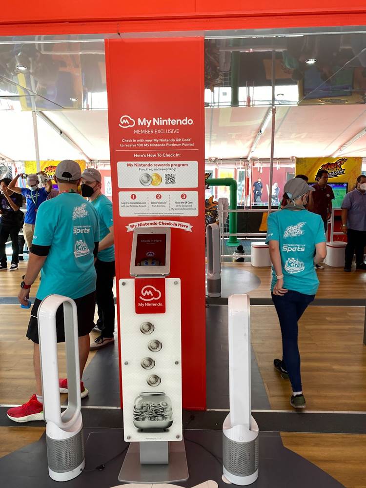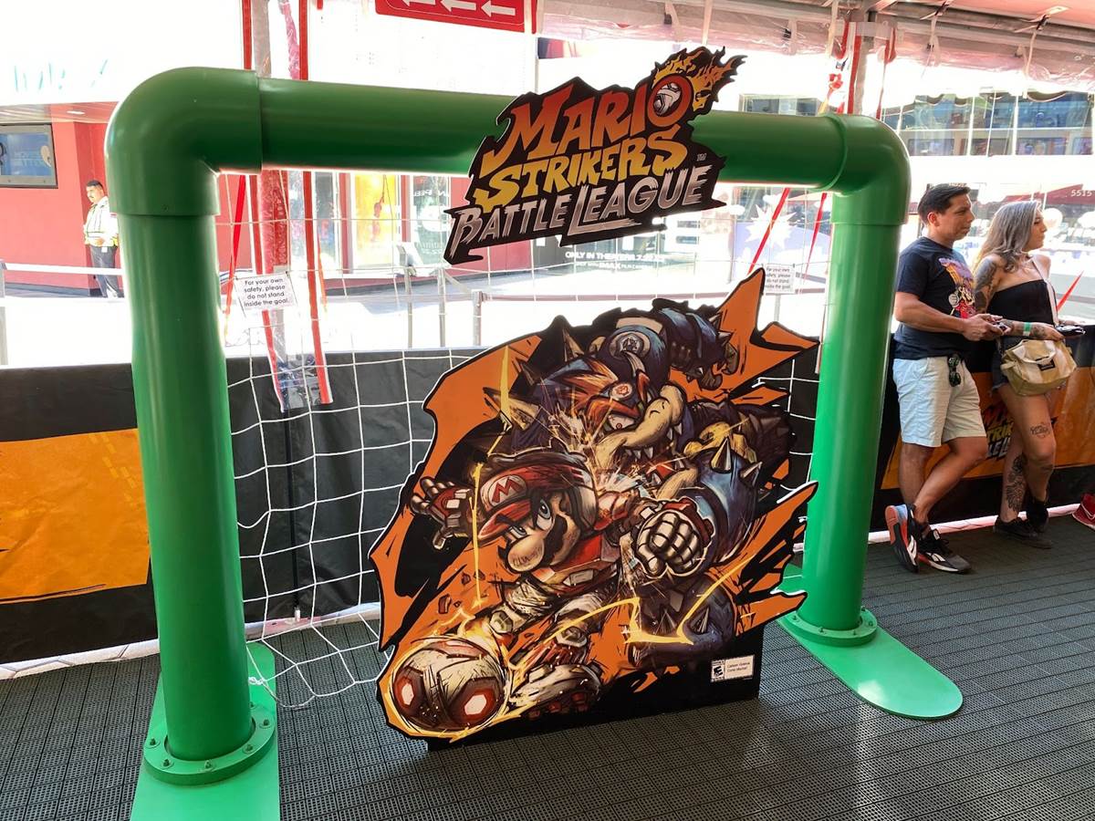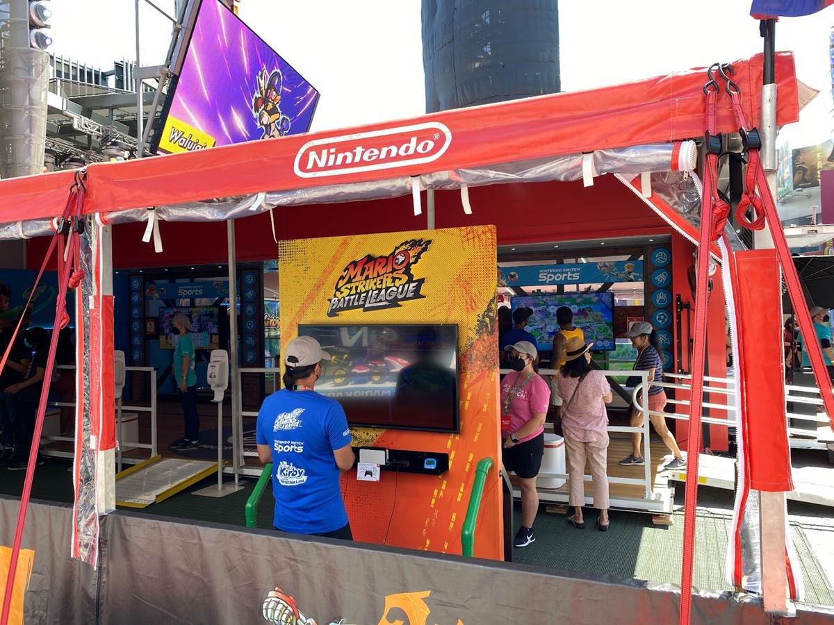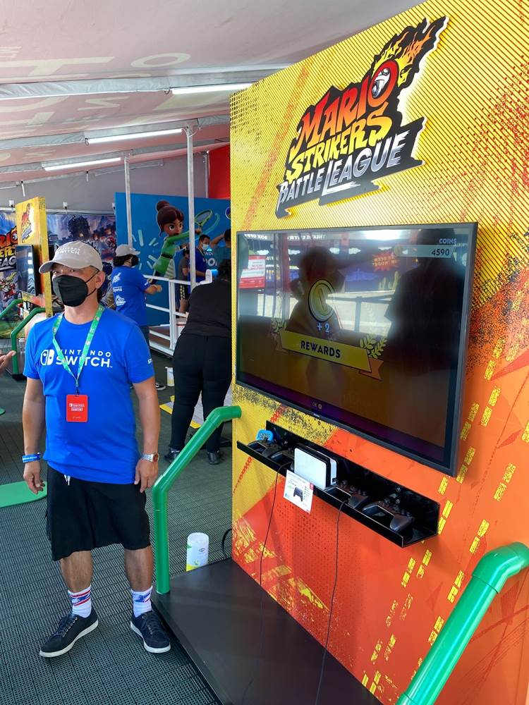 Once guests have gotten through the queue, they are brought into the main tent, where groups of four can play a series of Nintendo Switch games together– specifically Mario Strikers Battle League, Nintendo Switch Sports, and Kirby and the Forgotten Land.