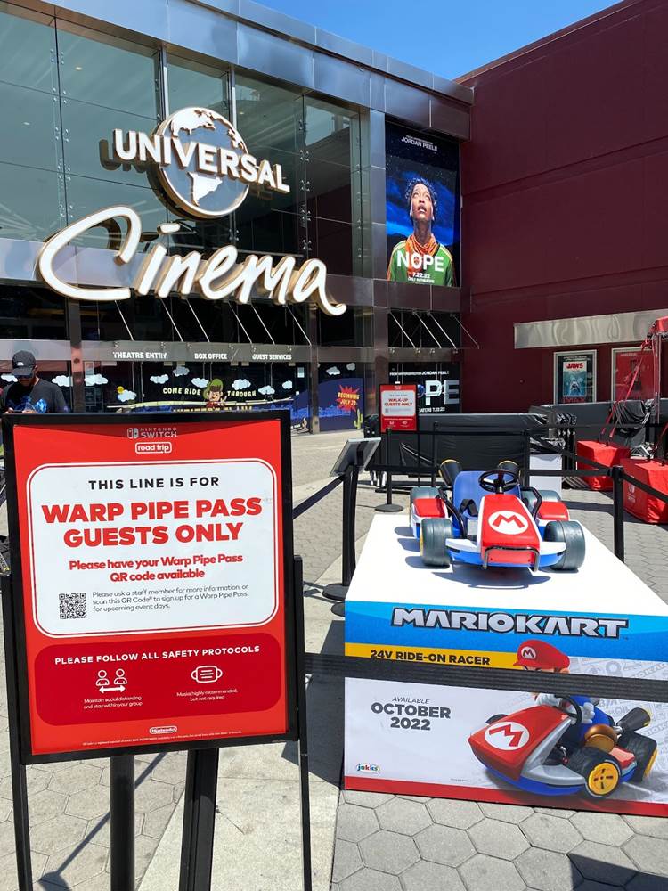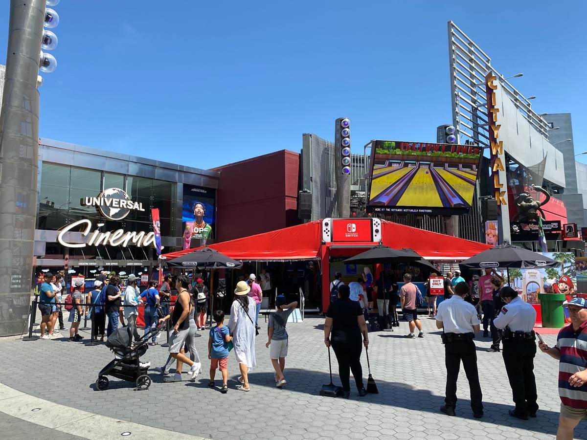 Guests will see signs along the pathways at Universal CityWalk pointing the way toward the Nintendo Switch Road Trip pop-up location, where two lines are formed for entry– one for those with pre-booked reservations, and a standby queue for those without.
