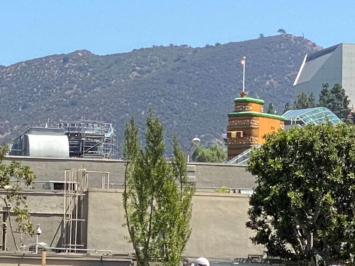 Departing guests are also given a complimentary Kirby and the Forgotten Land swag bag with a Super Mario action figure, a Nintendo Switch activity book, and a coupon for $1 off Fudge Stripe cookies. And on my way out of CityWalk, I caught a brief glimpse of the highly anticipated new land Super Nintendo World, which is currently under construction at Universal Studios Hollywood.