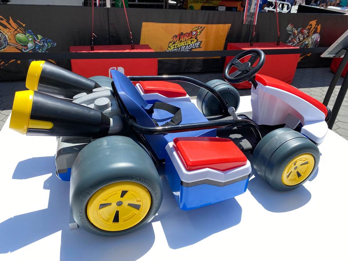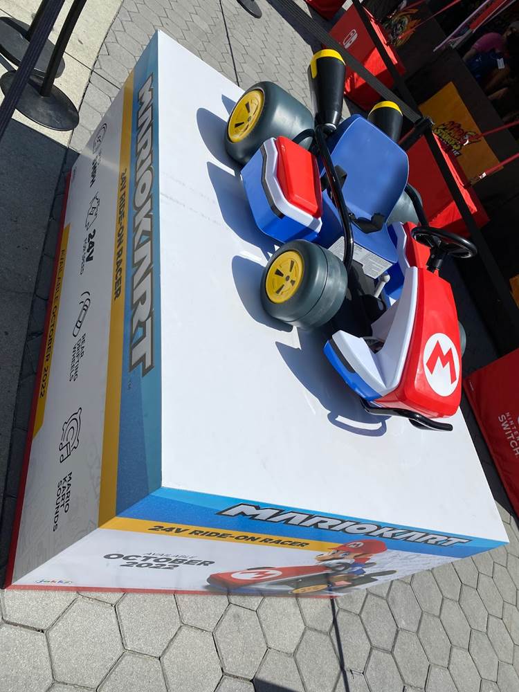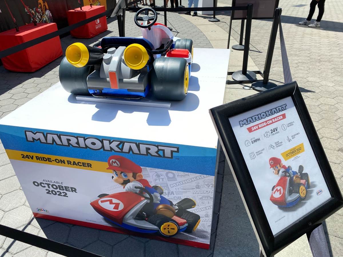 Outside the experience is a display for Jakks Pacific’s upcoming Mario Kart 24V ride-on racer, which boasts speeds up to eight miles per hour, rear drifting wheels, and Mart Kart sounds.