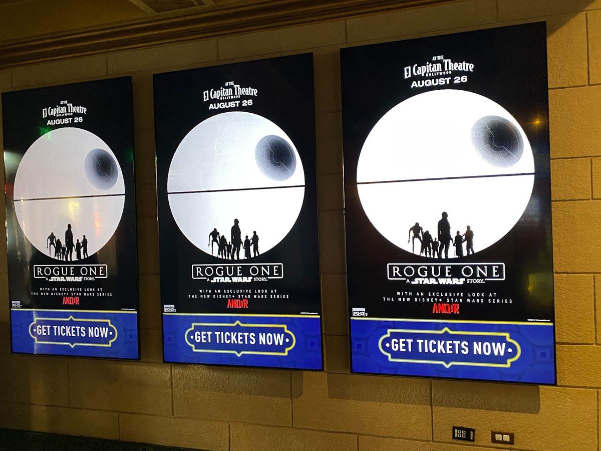 Last week we learned that the smash-hit 2016 film Rogue One: A Star Wars Story would be returning to Hollywood’s El Capitan Theatre for a week and a half, in addition to playing on select IMAX screens around the country. Rogue One originally played at El Capitan during its theatrical release, but has not made a return to this legendary movie house since that time– even during the theater’s Star Wars marathons, which have featured only the “Skywalker Saga" films (AKA Episodes I-IX).