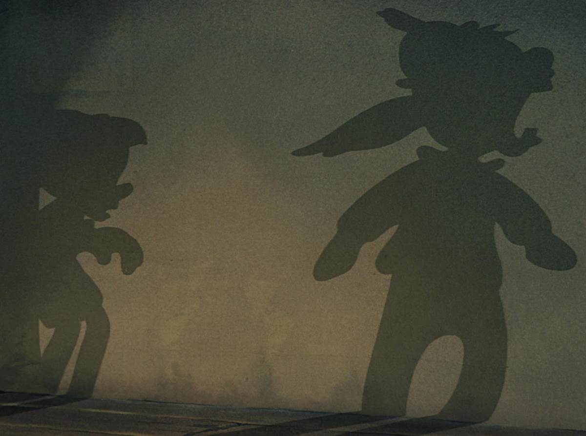 Early in the film, before the visit from the Blue Fairy, Geppetto dances around with his newly finished marionette, much to Figaro’s chagrin.