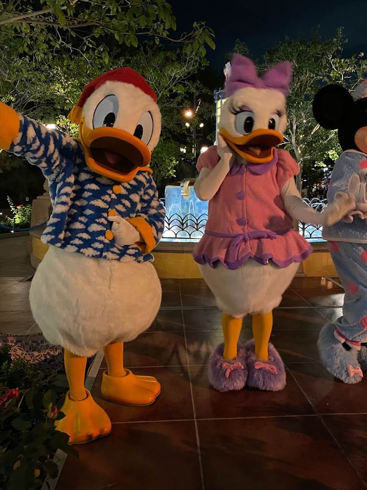 As a surprise on the way out of the park that night, Mickey and Friends were decked out in their pajamas to wave goodbye to the crowd in front of the Carthay Circle fountain on Buena Vista Street.