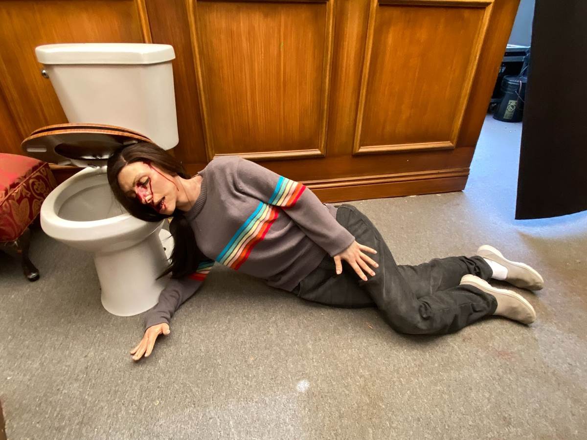 “Another challenge that was difficult to figure out: we wanted to do that switching-bodies moment. That’s hard to do without a lot of dialogue, so we came up with an idea inspired by a one-second shot in a montage from the film. Right after Millie’s attacked by the Butcher, she goes home, she takes a bubble bath, and then she goes to bed and she has a nightmare. She’s tossing and turning in bed, and they do this montage of what she’s dreaming about in her nightmare. Just for a second or two, there’s a shot of Millie’s bed in the Butcher’s lair, and then it changes."