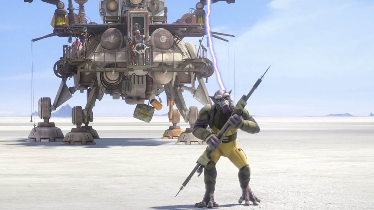 Episode 18: “The Lost Commanders" - Ahsoka sends Ezra, Kanan, Sabine, and Zeb to the Seelos System, where they are able to track down several former Republic Clone Troopers, including Captain Rex, Wolffe, and Gregor (all voiced by Dee Bradley Baker, reprising his roles from Star Wars: The Clone Wars) in order to retrieve information about potential rebel bases in the Outer Rim. Naturally Kanan is distrustful of clones after what he witnessed during Emperor Palpatine’s Order 66, though Rex reveals that he and his compatriots removed their inhibitor chips. Zeb helps the clones catch a giant sand monster in exchange for the info, but Wolffe covertly reports the presence of the two Jedi to the Empire.