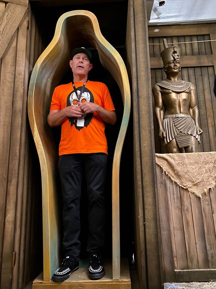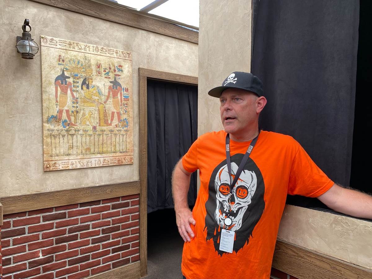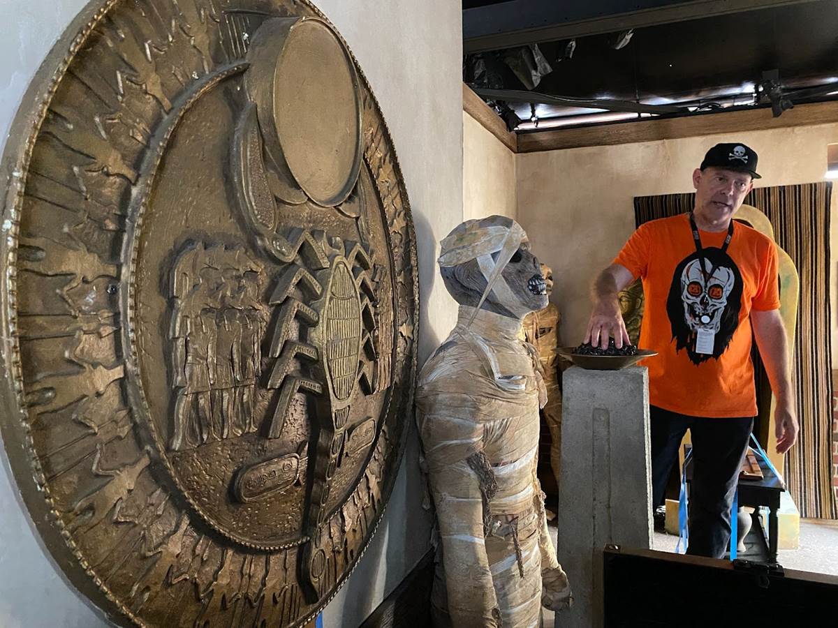 “What we have in our production facility offsite is all of these statues– different props and dressing from Stephen Sommers movies: The Mummy Returns, The Mummy from 1999. They gave us all this stuff after the movie wrapped, because it was just gonna be destroyed. The vast majority of these have never been used for Horror Nights, because they’re just too big. We just don’t have room for them. But this time last year I was in our warehouse and I was like, ‘Oh yeah, we have all these statues. I’m definitely going to write something for this year that uses these.’"