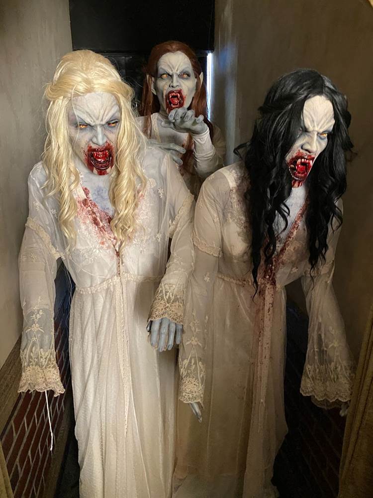 “[Next] is the curator of the museum’s office. Unfortunately he has been murdered. Once again you hear Renfield’s laughter, he pops out from behind a door. [After] a big blast of thunder and lightning, Dracula appears in the windows. Then he opens the window and comes right out onto the desk, and then you take one step and the Vampire Brides come rushing in. This is our little cameo from “Bride of Frankenstein Lives" last year.
