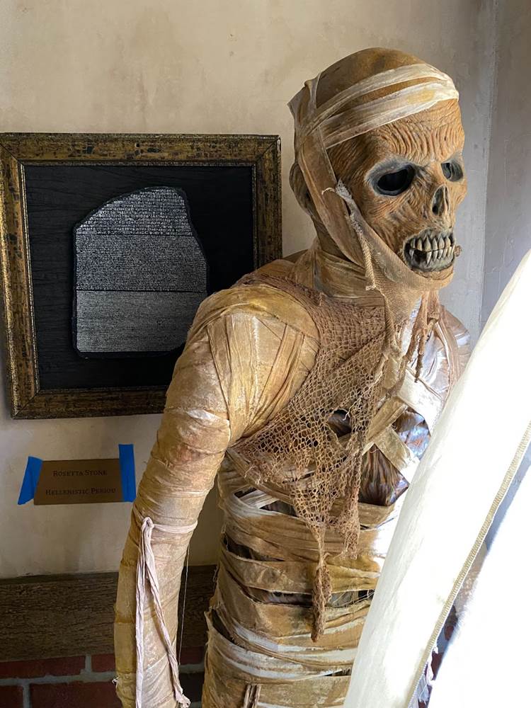 “How we connected it to Egypt is in recent years, Egyptologists have discovered that Anubis– which is the jackal-headed figure you always see– they realized that that was improperly translated. He isn’t actually a dog-headed deity; he is a wolf-headed deity. That made us go, ‘Oh, he’s a wolf and a man. That’s interesting.’ So I collaborated with our colleagues in Orlando on this, because we were both going to be doing a Universal Monsters house. We both agreed early on that it was gonna be Mummy, Wolfman, and Dracula. And we had totally different opinions on what the settings should be."