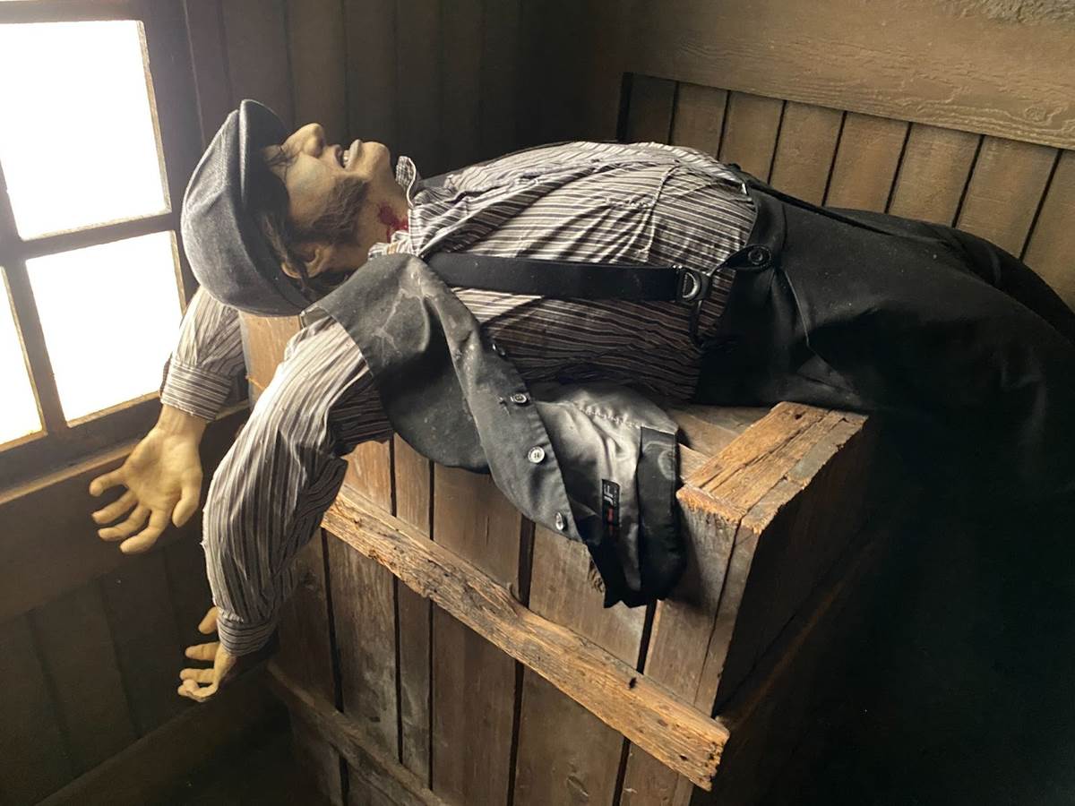 “And you’re hearing these freaky chanting voices, you go through a secret passageway in this tomb, and that takes you to the museum. The Mummy attacks you before you get there, and then you go into total darkness, which is an opportunity to do the classic effect I’ve been doing since I was ten years old: black industrial thread hanging in the path feels like cobwebs or something touching your face. It’s super simple, but it’s effective. You’re hearing the sound of flies buzzing around, but you’re also hearing the Wolfman as if he’s in there with you, stalking you. By the time you get to the end of the section, you get attacked by him again."