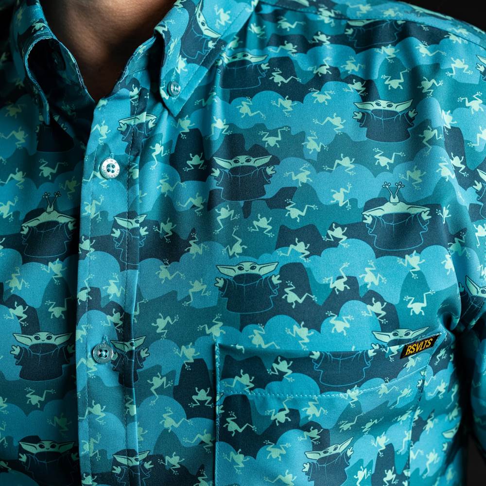At age 50, he’s the cutest kid in the Star Wars galaxy and we’d all be happy to have him as a charge. This top highlights Grogu surrounded by Force levitated amphibians and—spoiler alert— he does manage to snack on some delicious treats. It’s a froggy feast for the ages!