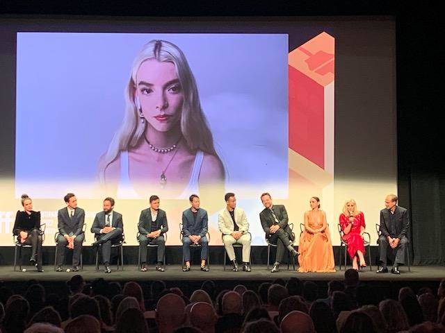 Proceeding to introduce multiple members of the cast, with Ralph Fiennes joining last and Anya Taylor-Joy joining by video link from Australia. Mylod joked with Taylor-Joy that she missed a good movie.