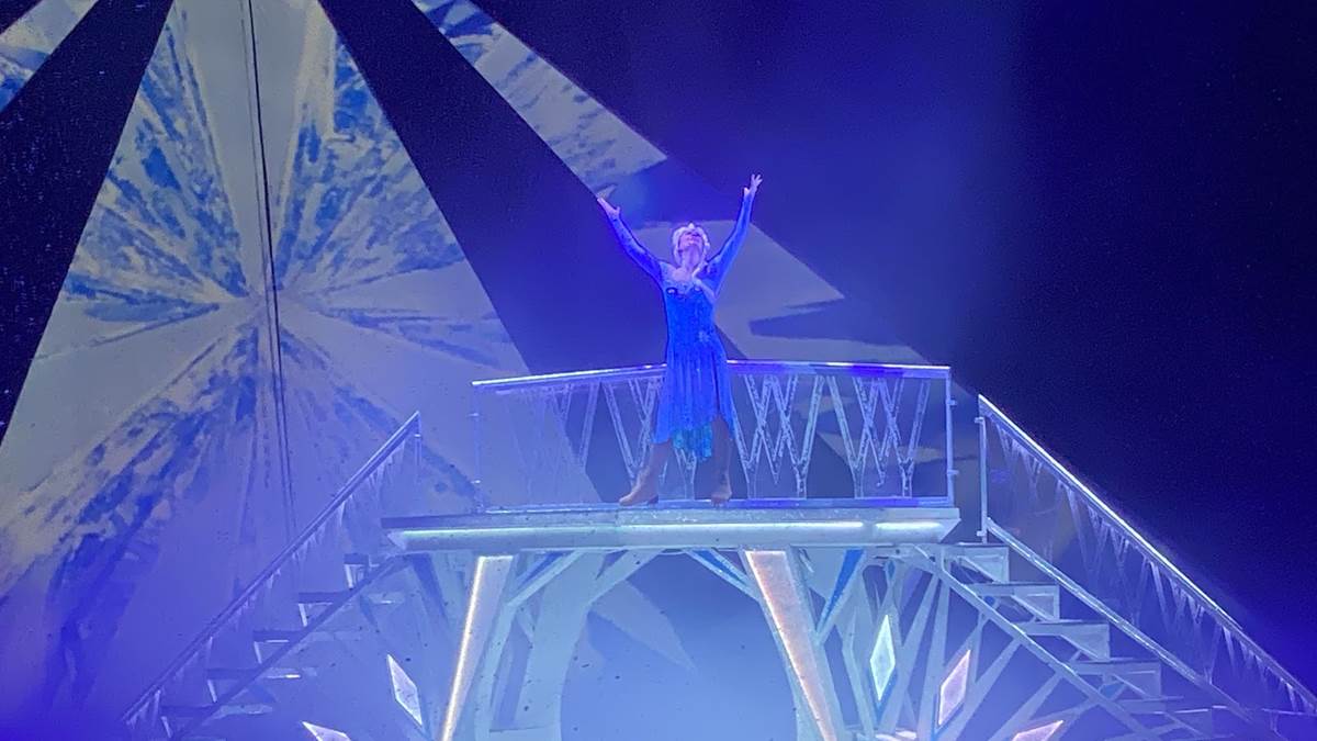 From there, the story is packaged nicely but tightly (as was Frozen) with a few moments of exposition in between the full scale musical numbers. The ensemble worked beautifully in “We Don’t Talk About Bruno" with what seemed like the full cast taking part in the number. “Surface Pressure" also worked with a chorus line of Donkeys behind Luisa dancing in unison. The Encanto portion of the show also featured some aerial acrobatics as well, and though the Frozen numbers were great in their own right, this took Encanto to a whole new level– quite literally.