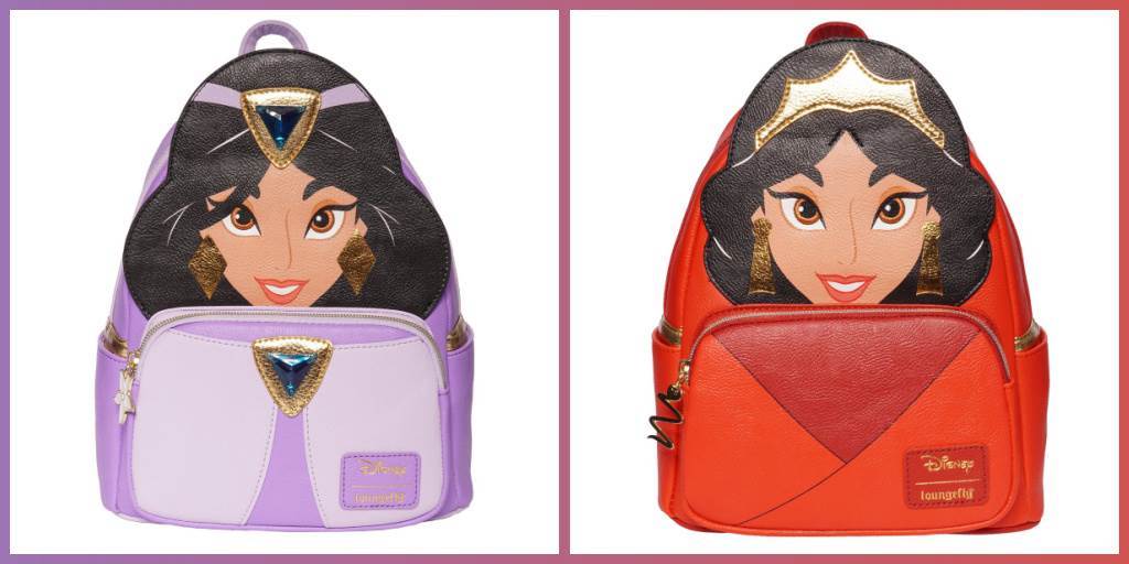 Loungefly has once again teamed up with Entertainment Earth for some delightful exclusive designs, this time themed to Jasmine from Disney’s Aladdin. Two new cosplay style mini backpacks feature the Princess in her purple and red outfits, looks that fans don’t often see outside of the film.