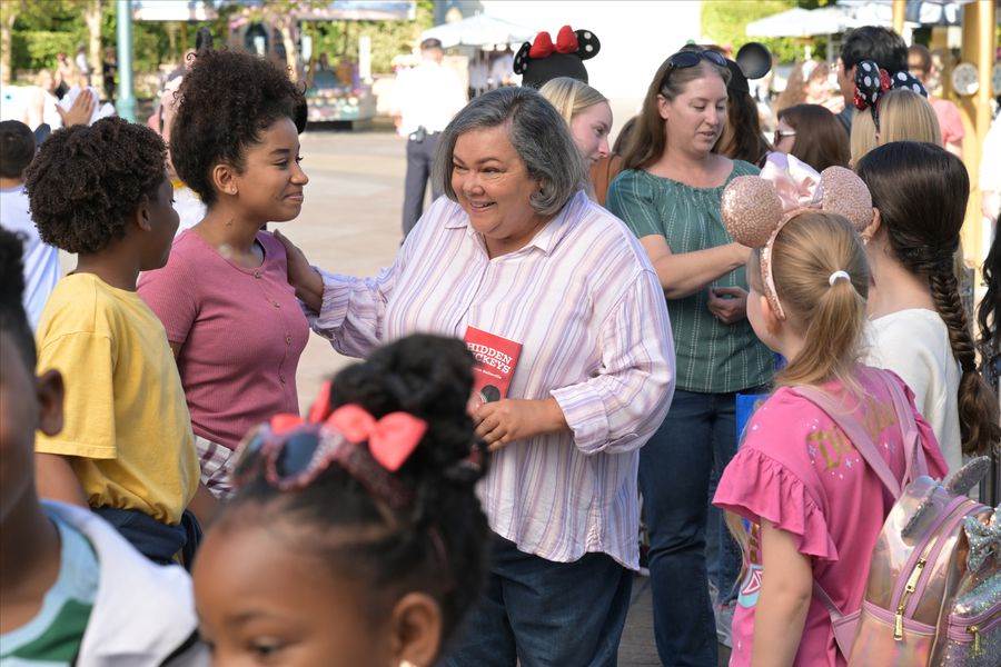 Over at “it’s a small world," Lupe introduces the children to the world of Hidden Mickeys. Not far away, Sarah and Denise browse a number of Pride items, from onesies to Stitch plushies. During this merch browsing session, Sarah also reveals that she could get heavily discounted tuition to Windmount Academy as an employee — but she has no intention of using it.
