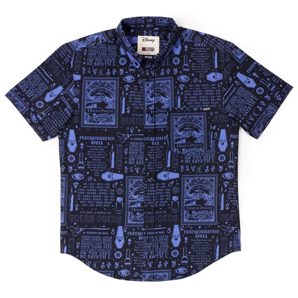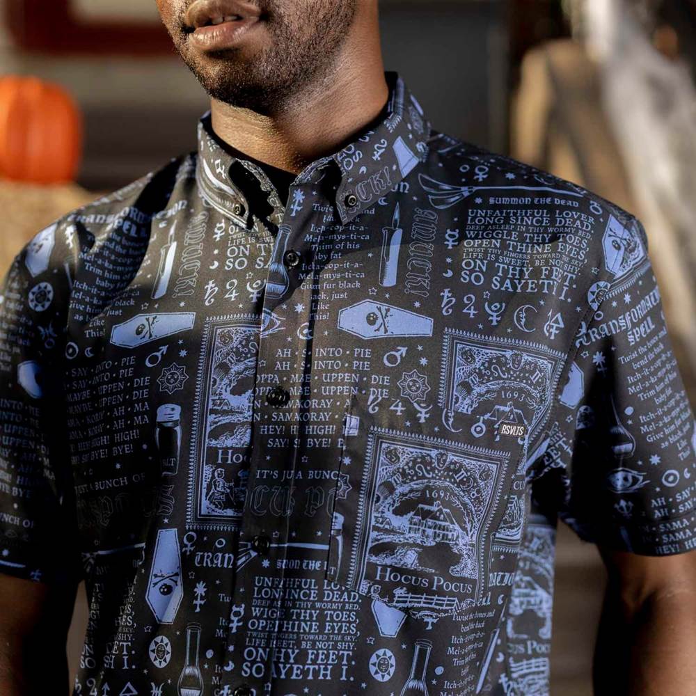 “Given to her by the Devil himself, Winifred's famous Spell Book contains all of her most powerful and evil spells. Luckily for you, this button down is made from our soft and stretchy KUNUFLEX™ material, not bound by human skin."