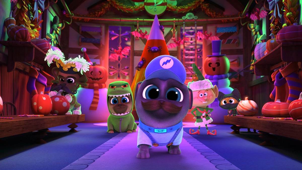 The second part of the episode is “The Elf Who Halloween’d." After being told a Halloween story by Willie, they pals receive a call from Santa’s Christmas Elf Biscotti. Rolly asks if there is a Christmas cookie emergency, but there is not. Biscotti lets them know that fellow elf Chip is on the way to the Doggy Dojo. Chip has never experienced Halloween and wants to experience what it is all about before it is over. The mission is to show Chip the bestest most memorable halloween a christmas elf could have.