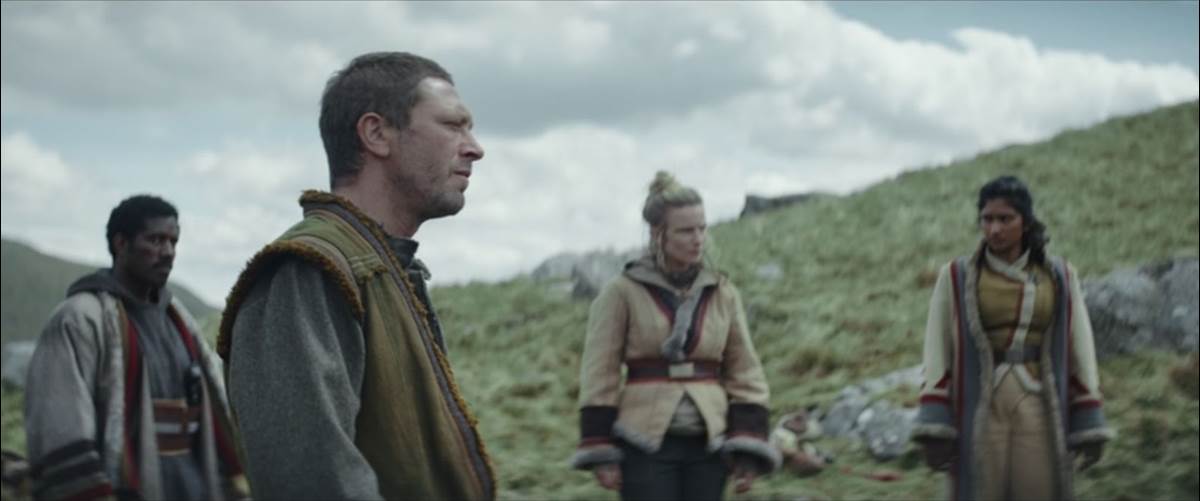 Other scenes update us on the progress of dedicated-but-inexperienced ISB agent Dedra Meero (Denise Gough) and her surly supervisor Blevin (Ben Bailey Smith), who has traveled to Ferrix to set up an Imperial headquarters, but a good 80% of this episode’s 40-minute running time is spent with the team on Aldhani. The crew trains at their camp– which is cleverly set up as a scale miniature of their target Imperial stronghold– then tears it down as they begin their hike across the countryside after a scare from a low-flying TIE fighter. On the day before the heist is set to occur, Skeen discovers Cassian’s hidden kyber crystal and demands to know how he came to be part of the clandestine mission. This leads to more revelations about the characters’ pasts while highlighting the strengths of the cast’s performances and Dan Gilroy’s dialogue– it’s incredibly impressive to me that the Gilroys were permitted by Disney to make a live-action Star Wars series that can have entire episodes go by with almost no action whatsoever. But what’s even more amazing is how taut and suspenseful everything feels, despite the fact that this installment is once again mostly made up of various people talking. Considering that next week’s episode is likely to cap off this arc of Andor with an action-heavy payoff to the Aldhani operation, I love that this is a show that is willing to take its time letting us get to know the people involved first.