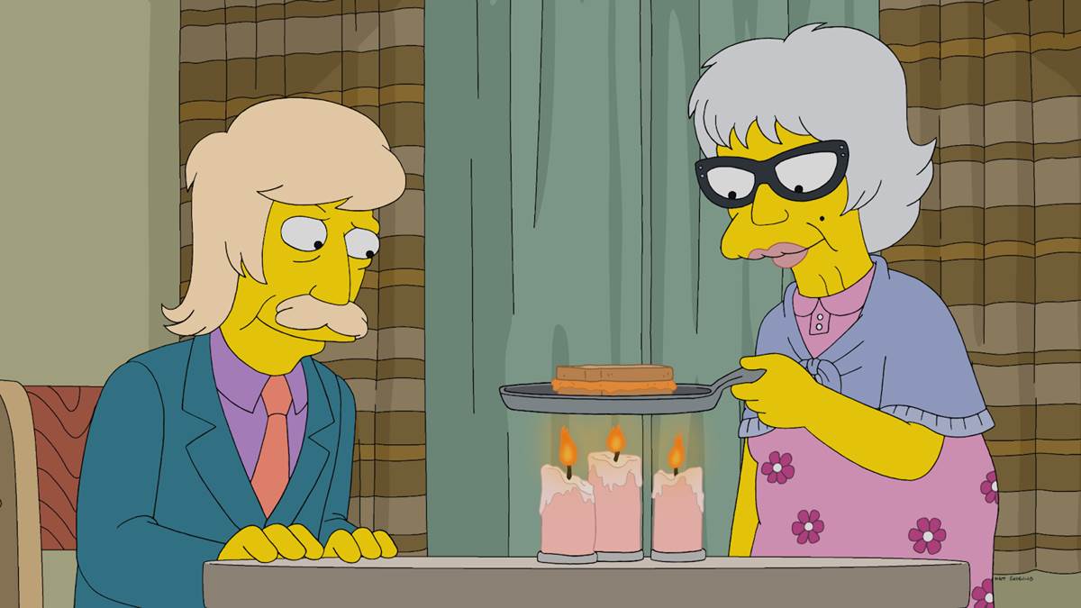 Longtime viewers of this show will remember the uproar over the ninth-season episode “The Principal and the Pauper," in which Principal Seymour Skinner (Harry Shearer) was revealed to have been an imposter named Armin Tamzarian all along. So think many more ideas like that– character twists that would “ruin" the series in the eyes of many fans– presented in succession over the course of half an hour, and you have “Lisa the Boy Scout." In the first example, Lenny (also Shearer) turns out to have only ever existed as an imaginary friend in the mind of Carl (Alex Désert). The second clip has a middle-aged Bart traveling back in time to the events of The Simpsons’ 1989 series premiere “Simpsons Roasting On an Open Fire" and planting the seeds of information that would become the show’s many oft-cited instances of “predicting the future." Another clip has Martin Prince (Grey DeLisle) revealed to be a 36-year-old undercover police officer who just happens to look like a ten-year-old, posing as an elementary school student a la 21 Jump Street. Further examples of fake unused episode ideas include Homer (Dan Castellaneta) building a Field of Dreams but for Canadian football, Professor Frink (Hank Azaria) abandoned on Mars like in The Martian, and a delightfully twisted, Kafkaesque origin story for Sarcastic Man (Azaria again).