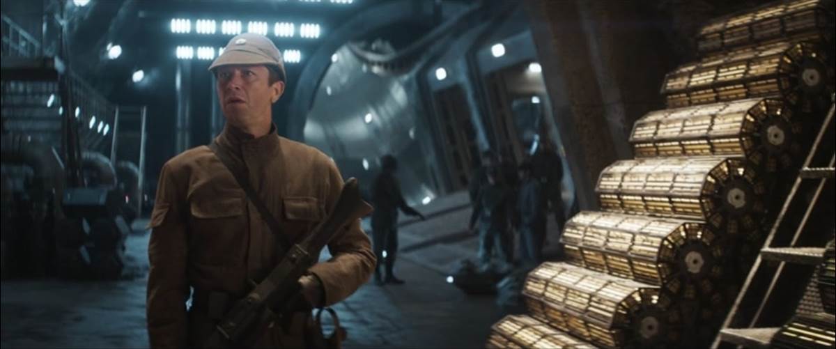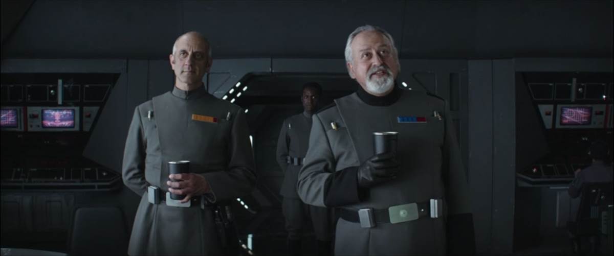 Then we get to meet the local populace known as the Dhanis, as they dutifully march their way toward their now-occupied sacred valley for an ancient cosmic ritual that we’ve learned takes place once every three years, and which our heroes plan to use as cover for their escape. I’ll be honest and say that my first disappointment came when the Dhanis turned out to be just another bunch of humans (I’ve been saying this show needs more weird aliens), but I guess if they weren’t it would be much more difficult for the entirely human rebel cell to pose as members of their tribe. But the fun thing about the Dhanis is that they clearly don’t care much for the Empire either, immediately burning a ceremonial goat’s hide they’re presented with before the ritual begins. It’s around this point that Vel (Faye Marsay) gives the signal, and the heist proper kicks in. Disguised as Imperial officers, Cassian and company infiltrate the garrison and take a number of hostages, including the family of the high-ranking commandant (played by Stanley Townsend of The Current War) whose belt no longer fits him because he’s so “fat and satisfied," as Andor himself would say. Then everyone converges on the station’s underground vault, where the bulk of the episode’s action takes place.