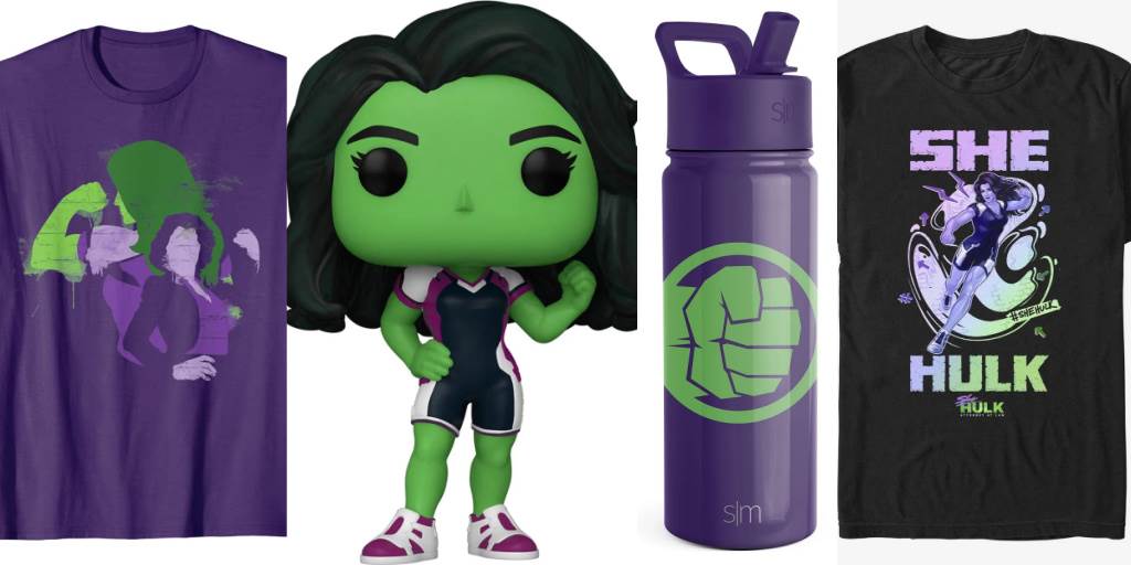 Power up your Funko collection with a new She-Hulk Pop! showcasing Jen in her custom made suit. As for your wardrobe, there are plenty of fun shirt designs from Amazon, Walmart and Hot Topic that feature Jen, Titania and Abomination. Finally, stay hydrated with a sturdy water bottle from Simple Modern.