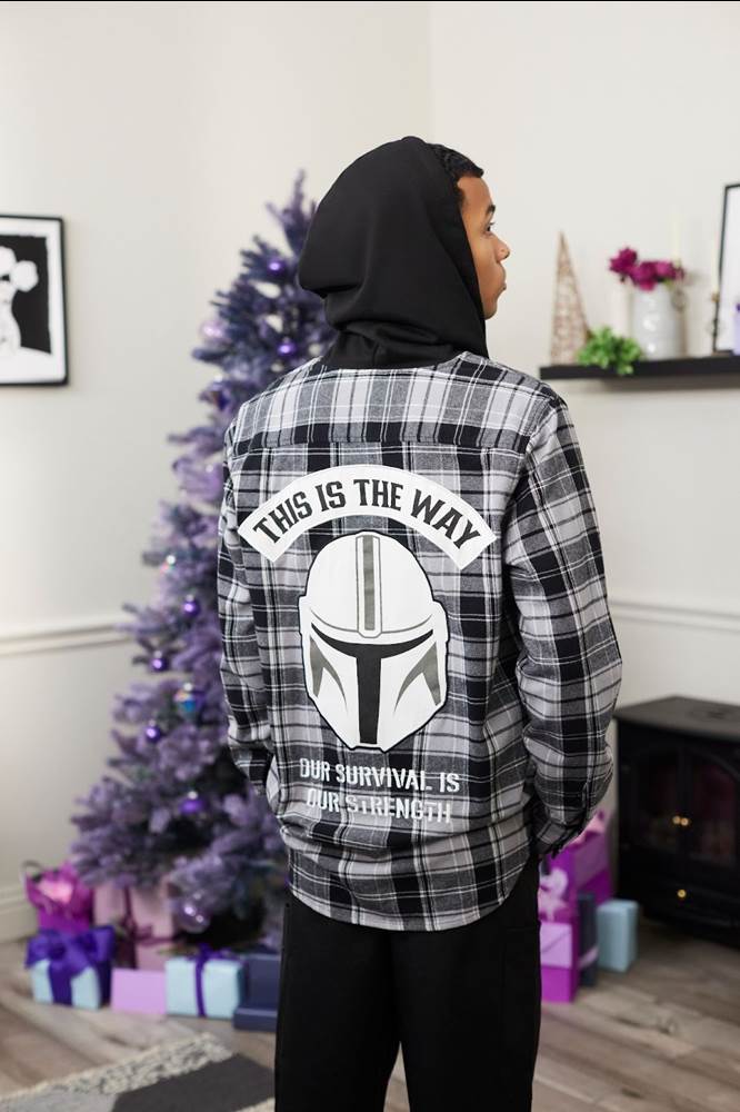 For the apparel fans, there’s Darth Vader and Stromtrooper matching pajamas and holiday sweaters from Hanna Andersson, while Her Universe delivers a Mando flannel and Planet Patches Star Wars shackets.
