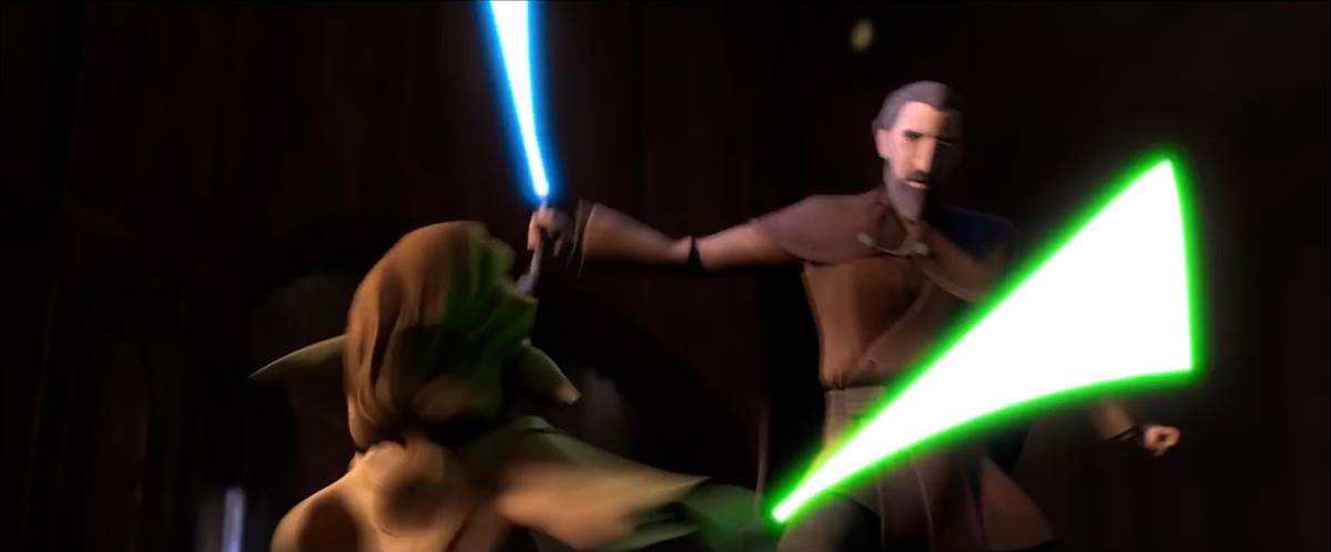 Dooku confronts Sidious, angry that the Sith Lord allowed Darth Maul to kill Qui-Gon Jinn. “The galaxy will not be remade without sacrifice," says Palpatine, adding “I will ask more of you if we are to succeed." Yaddle listens in on the conversation as Dooku questions his own actions, then she interrupts the pair of darksiders and demands that Dooku return to the light. But with Sidious whispering in his ear, Dooku turns down the chance to bring Palpatine to justice and attacks Yaddle with his lightsaber. What follows is a hair-raising battle that brings to mind Dooku’s fight against Yoda in Attack of the Clones, but this time it ends with Yaddle seemingly being crushed by a large metal door after telling Dooku she has stepped down from the Jedi Council because he was right about “so many things." But Yaddle uses the Force to survive this assault, only to collapse on the floor in front of Dooku and Sidious from the overexertion. This leaves Dooku with the final task of striking Master Yaddle down one final time, at which Palpatine only smiles in response. This was immediately my favorite episode of Tales of the Jedi, though I found them all to be strong in their own right. Saul Ruiz again does a wonderful job of translating Dave Filoni’s script to the small screen, with a tremendous amount of emotion and consequence packed into less than 15 minutes of content. The three Dooku episodes, taken together, give the audience plenty of previously unexplored insight into this character’s fall from grace. It makes for a fantastic companion piece to Cavan Scott’s audio drama Star Wars: Dooku - Jedi Lost, and from what I remember I don’t believe the two contradict each other in any notable way. I think fans will be happy to hear that, as I believe that this series has only made the tale of Count Dooku that much more tragic.
