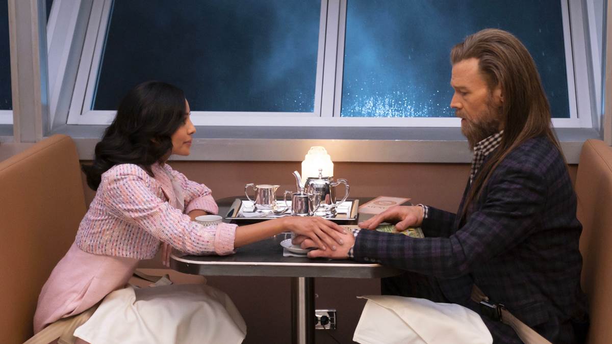 Trying to cross the ocean faster than the kids, Rhonda, Milligan, and Ms. Perumal (MaameYaa, Ryan Hurst and Gia Sandhu) seem to be slowing down. The dirigible blimp has encountered bad weather, slowing their travels, but allowing Milligan to gain some time to talk about the struggles of being a father again to Kate. Ms. Perumal tells him that he can worry all he wants, but that worry will not armor him when something bad happens.