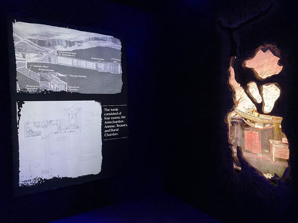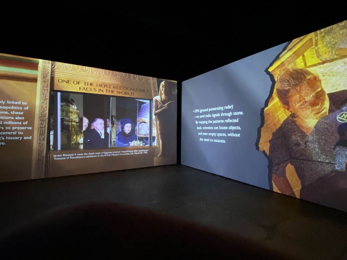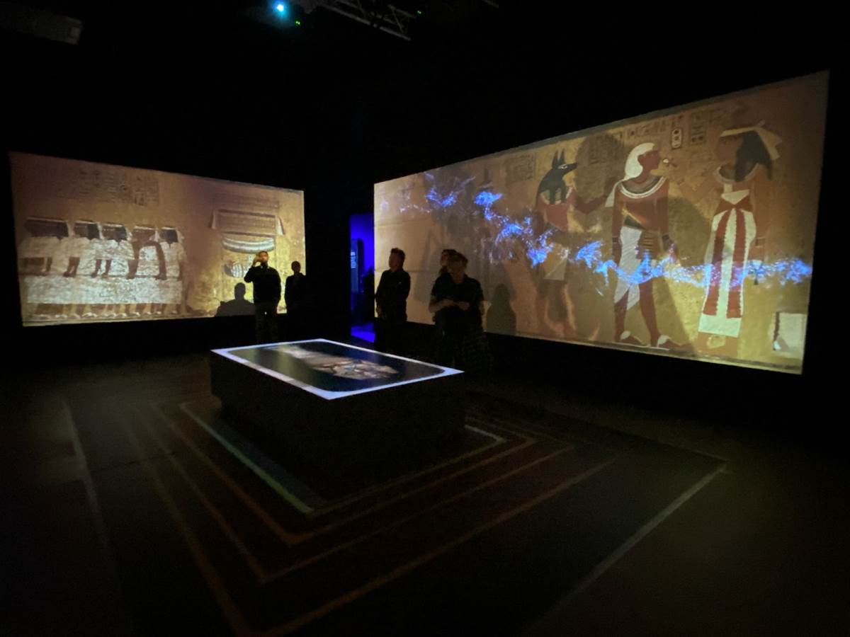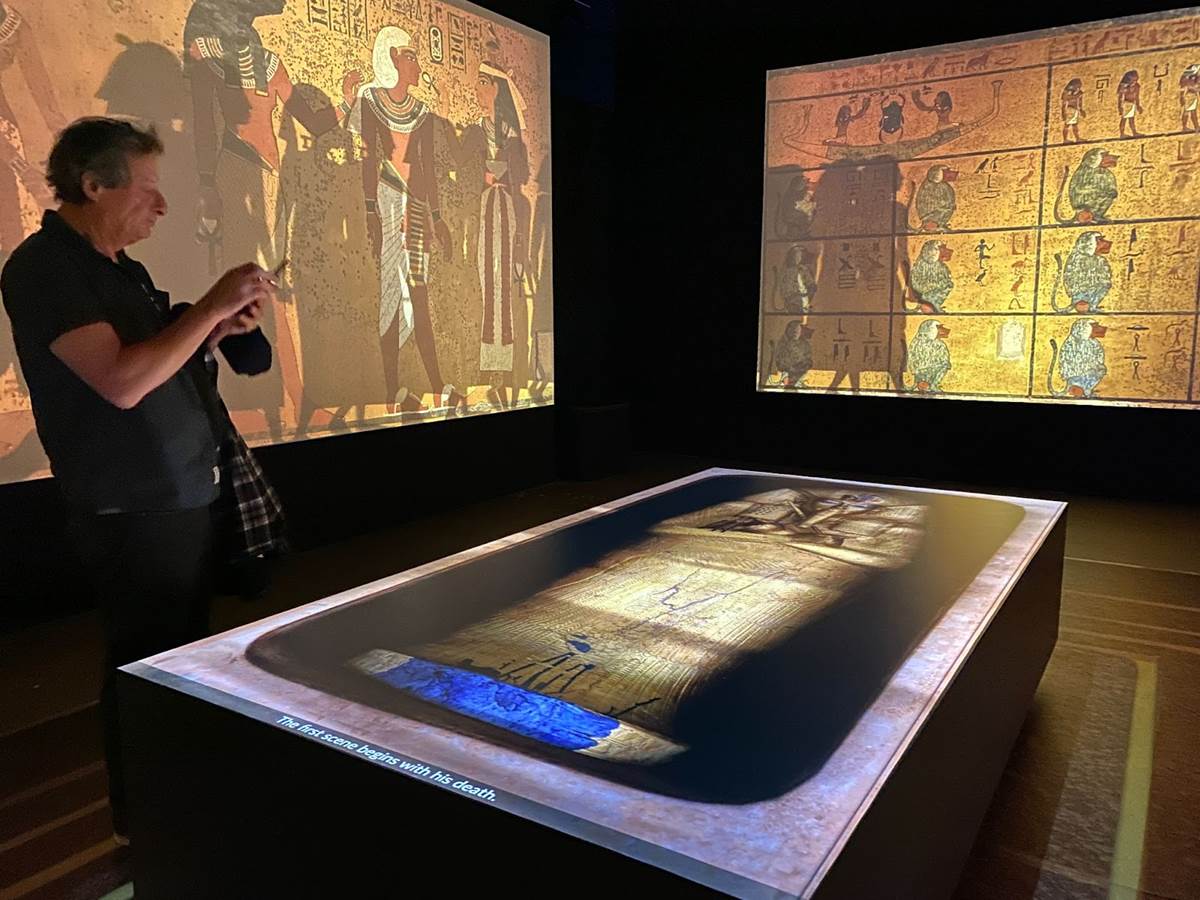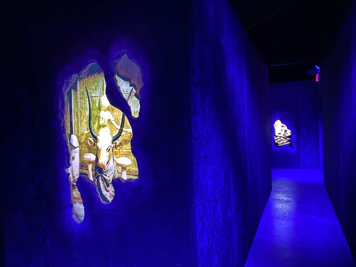 But the first real “wow" moment of the “Beyond King Tut" experience comes as you enter the room designed to replicate the experience of what it must have been like to discover the tomb itself. A virtual sarcophagus sits in the middle of the chamber while projection effects and informative historical narration explain the process of uncovering the site and how the area was laid out.