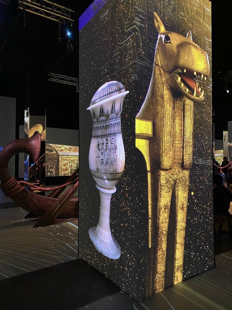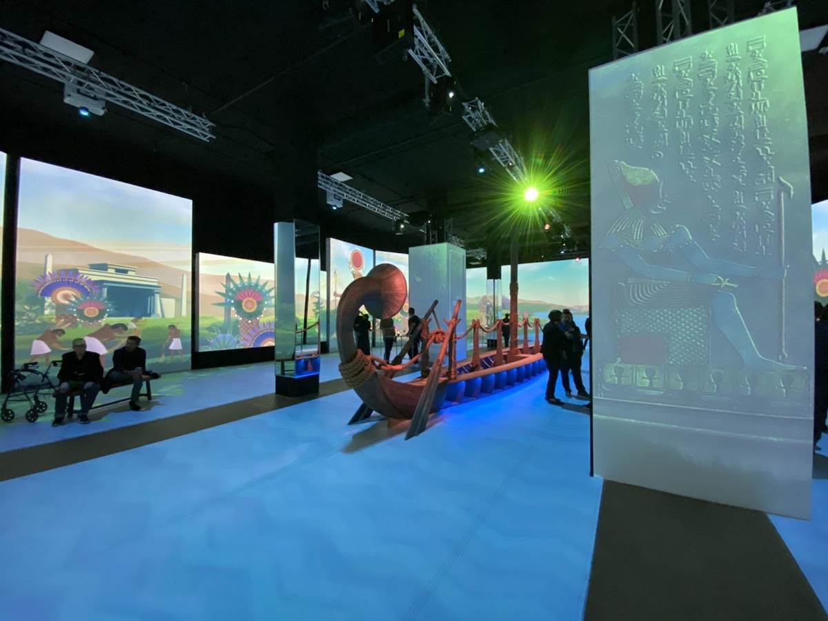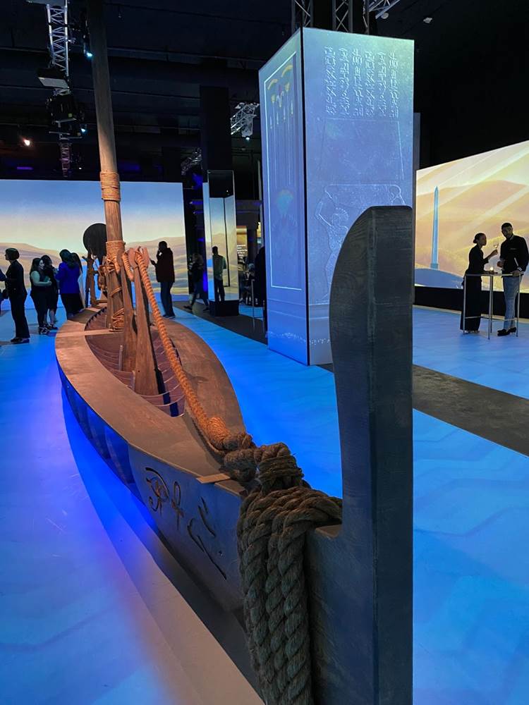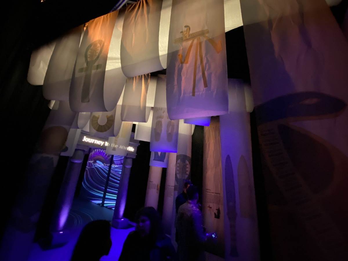 In this final enormous area, tales of the Ancient Egyptian afterlife are described via audio narration, while images of these myths are projected onto the surrounding walls. A replica of a solar funerary barge sits in the center of the chamber.