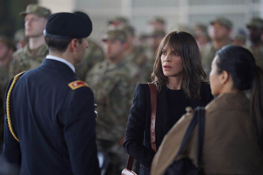 In the newsroom Claire (Meredith Holzman) brings in her son’s ferret Harry to work because she is going to bring it to show and tell later in the day. Yuna, Gabriel, and Bob (Grace Dove, Pablo Castelblanco, Matt Malloy) all question whether the animal is dangerous, but Claire assures them it is safe. (I think we know this animal is going to get loose in the newsroom later.) Eileen and Roz (Hilary Swank, Grace Dove) are working their new leads in the Gloria Nanmac case but have yet to develop any follow up information on two prime suspects.