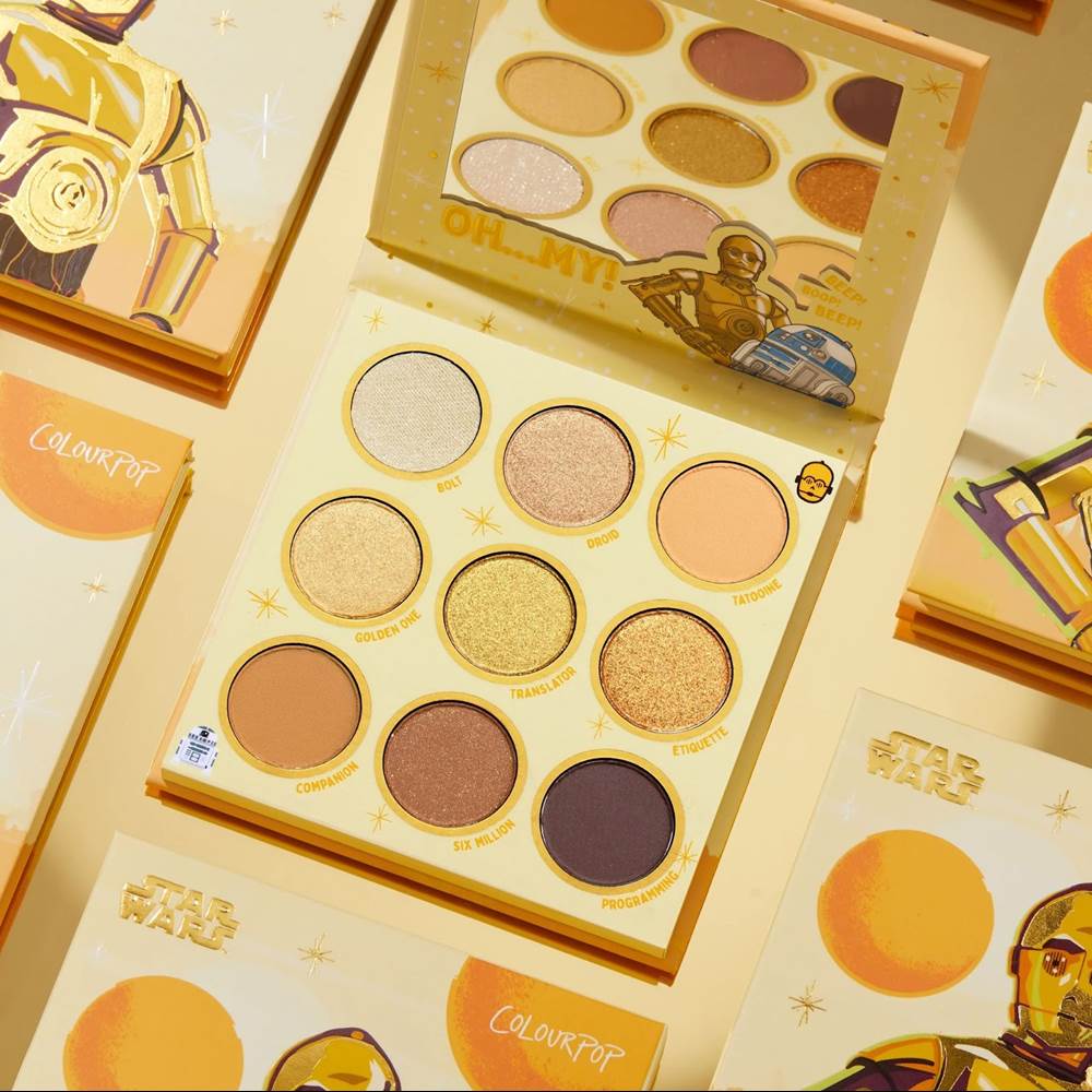 ColourPop C-3PO Pressed Powder Palette ($16) - “Be the brightest in the galaxy with this golden 9-pan palette inspired by everyone’s favorite protocol droid. It features our ultra-pigmented pressed powder and Super Shock formulas that are long-wearing, super velvety, apply evenly and blend like a dream. Program endless out-of-this-world looks with pale + bright yellows and sparkling golds that’ll make you shine like a star…or a golden droid."