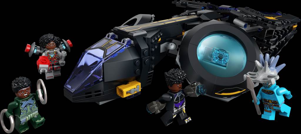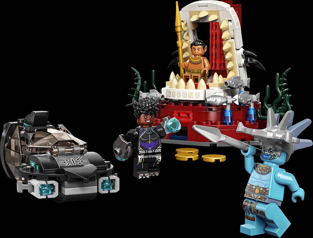 Recreate favorite movie moments or dream up new adventures with LEGO sets of Shuri’s Sunbird and King Namor’s Throne Room! Each comes with character minifigures from the movie.