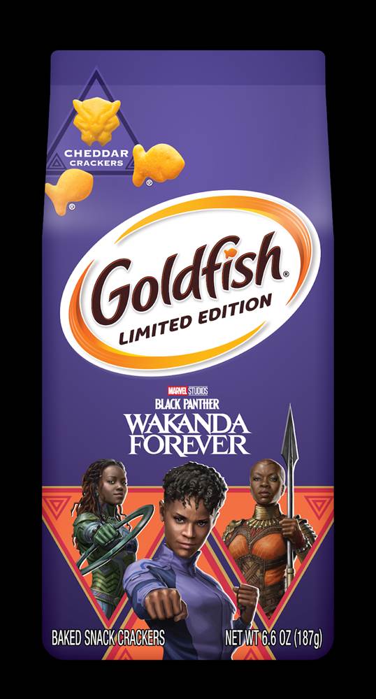 For cheesy lunchtime goodness, enjoy Kraft mac & cheese with Wakanda shaped noodles! Feeling a snack attack coming on? Goldfish crackers are a great choice, especially with a Black Panther shaped cracker in the mix.