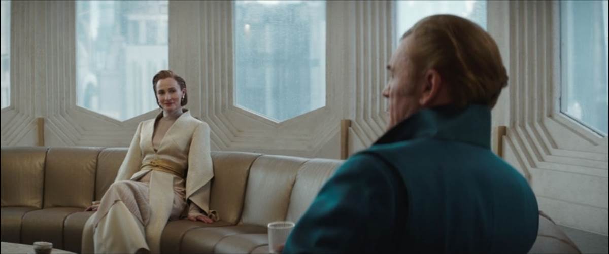 “One Way Out" continues with Cassian trying to break down Kino’s walls and enlist his assistance in the breakout plan, a strategy that kicks in fairly early on in the episode. Meanwhile, we check in on the Imperial Security Bureau, where Dedro Meero (Denise Gough) briefs Major Partagaz (Anton Lesser) about the situation with the captured rebel ship. Partagaz plans an ambush on a rebel cell with the help of Supervisor Lonni Jung (Robert Emms), and we cut to Mon Mothma’s apartment at the Chandrilan Embassy, and a meeting between Mon (Genevieve O’Reilly), Tay Kolma (Ben Miles), and a crime boss from their homeworld named Davo Sculdun (Richard Dillane from Argo). Sculdun is more than happy to launder the rebellion’s money, but the steep price he asks in return is essentially for an arranged marriage between his teenage son and Mon Mothma’s daughter. Mon is having none of it and has Tay escort Davo out, but we– and Sculdun– can see that the wheels are turning. On Ferrix, we learn that Cassian’s adoptive mother Maarva is refusing to take her medicine, as representatives from both the Rebellion and the Empire watch on, observing her every move. The bulk of the remainder of the episode is focused on the escape from the factory facility on Narkina 5, which is a thrilling extended sequence that combines exhilaration with numerous harrowing moments as inmates meet their tragic ends as unavoidable casualties along the way. It’s great just sitting back and watching the action unfold in this long-awaited breakout, especially with an accomplished actor like Serkis leading the charge alongside Luna.