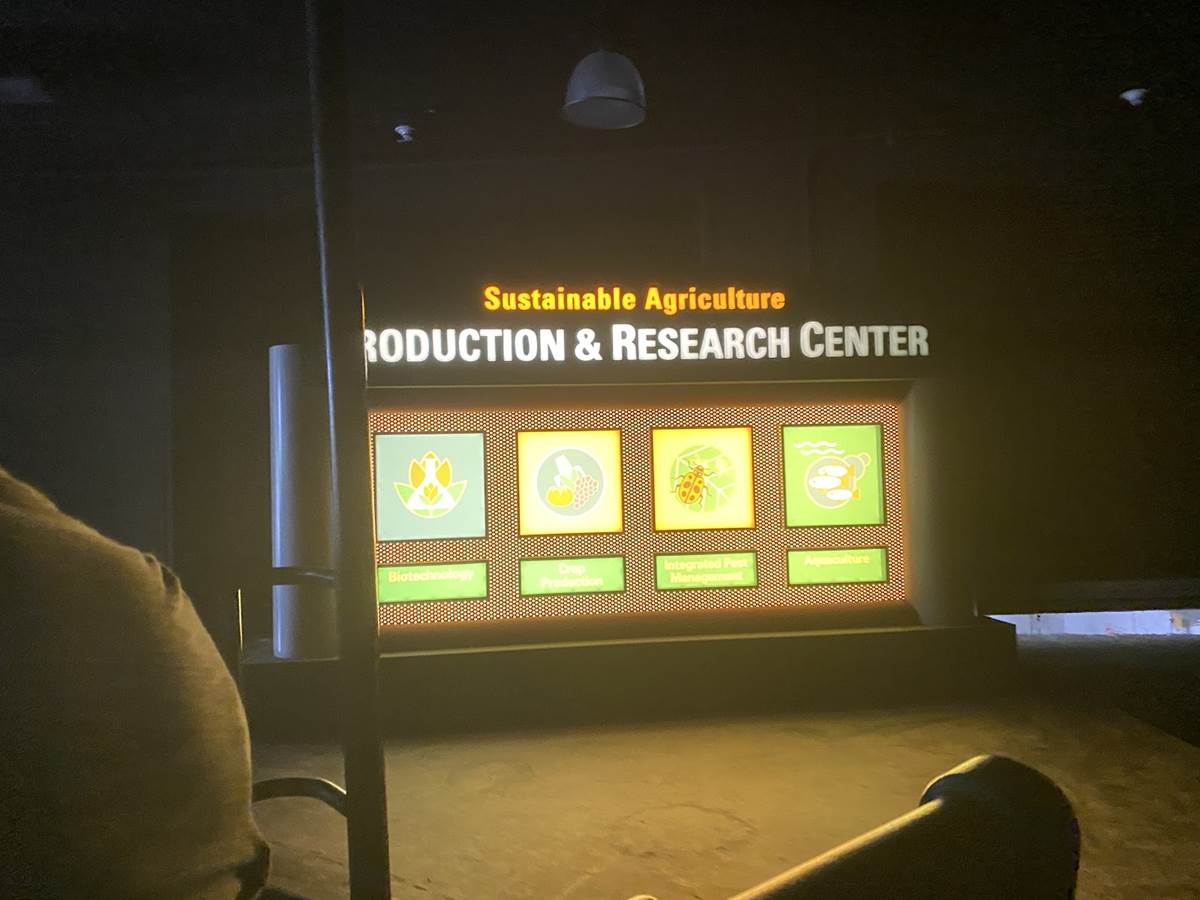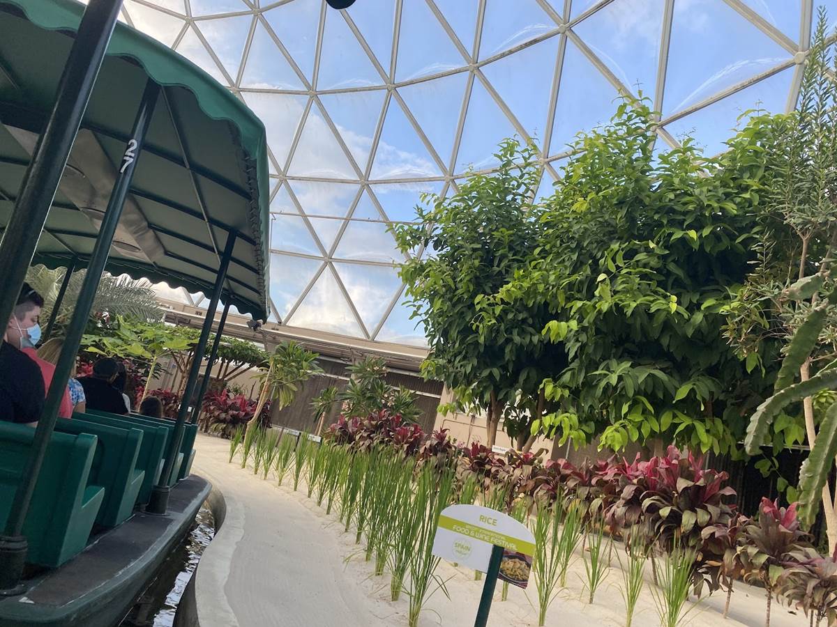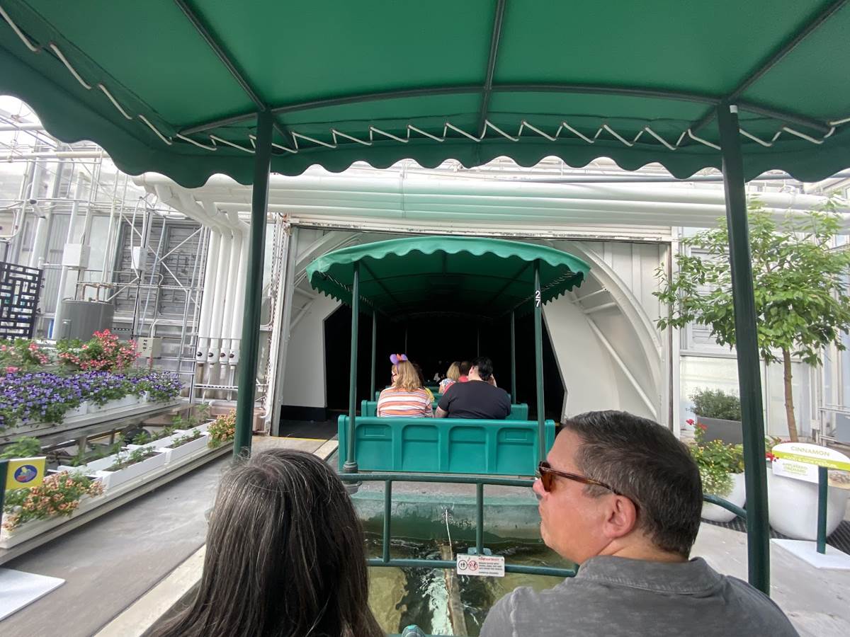 So we got to thinking— how can Big City Greens be injected into this EPCOT attraction while still maintaining the spirit of the original journey? The attraction, as it currently stands, takes passengers aboard boats on a journey through the diverse environments of our planet, before passing by a traditional farm. There, the guests float into a barn, where screens line the walls and showcase footage of different farming, harvesting, and pest control techniques. The boats then float around a corner and into a series of greenhouses and working laboratories where new experimental techniques are showcased, including hydroponics and elaborate aqua farming systems. Currently, for the EPCOT International Festival of the Holidays, the greenhouses are lit up with festive lights, and that can be seen in the video below.