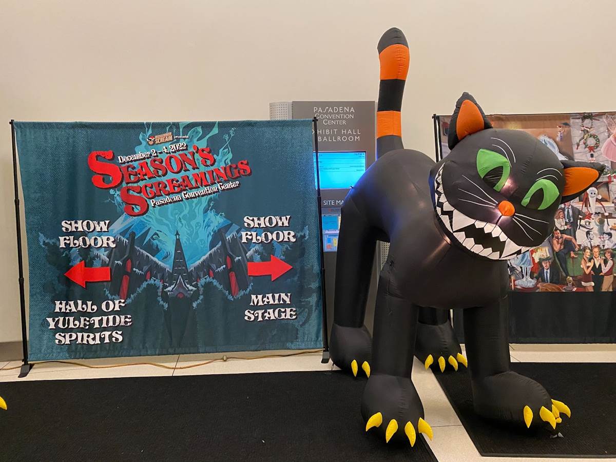I attended opening night of Season’s Screamings 2022 on Friday at the Pasadena Convention Center, and it was wonderful to see all the yuletide spooks and decorations again during this event. I even ran into our old friend Bob Gurr, the legendary Walt Disney Imagineer, who was signing autographs and posing for photos with fans at the Haunted Orange County booth.