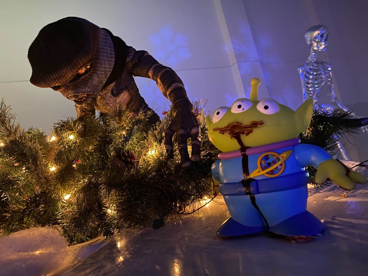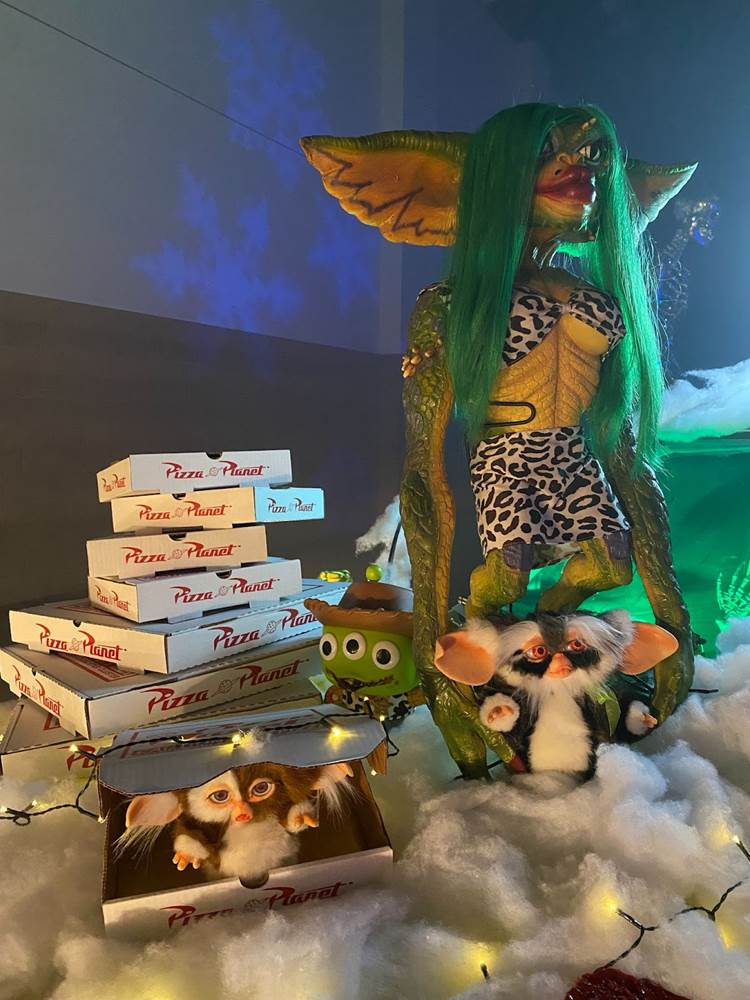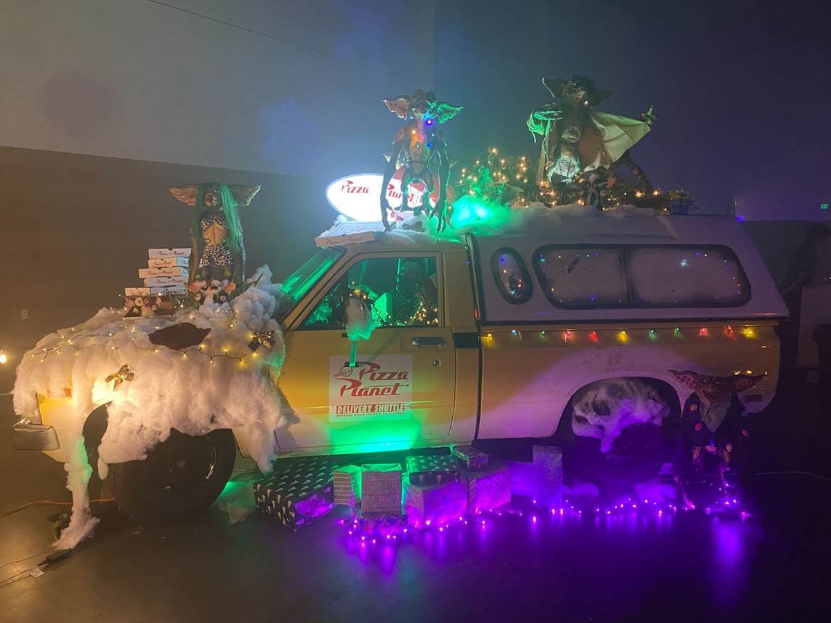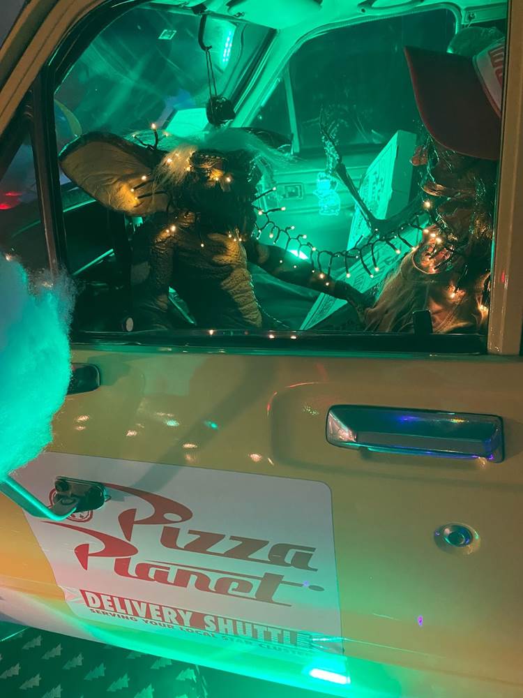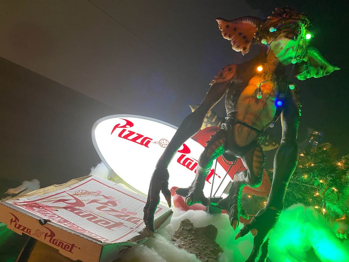 Also in the Hall of Yuletide Spirits, I came across the Pizza Planet truck from Disney’s Toy Story franchise, but here it had been overrun by the mischievous monsters from Joe Dante’s 1984 holiday horror hit Gremlins and its 1990 sequel.