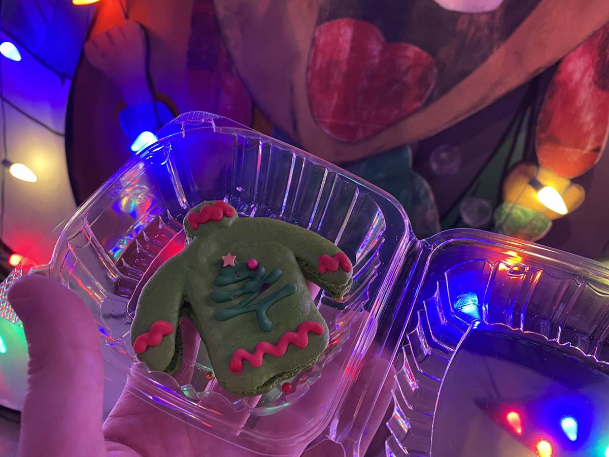 With so many options, it was hard to make a choice, but I settled on an ugly sweater-shaped Snickerdoodle Macaron.