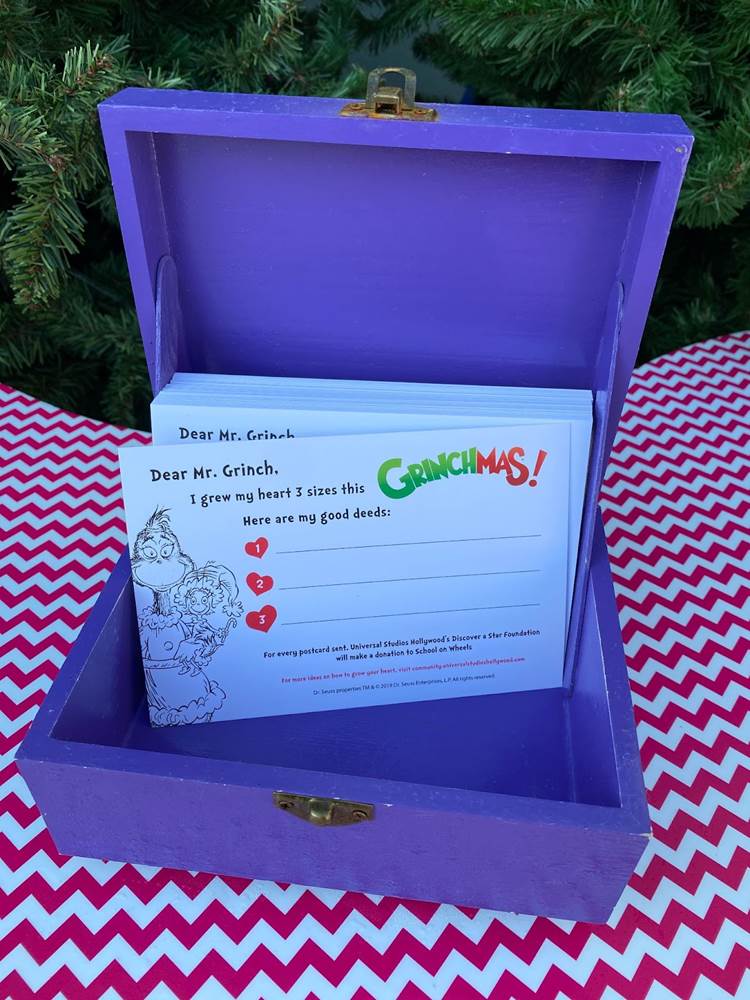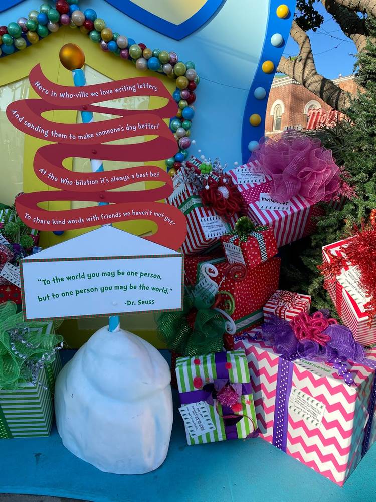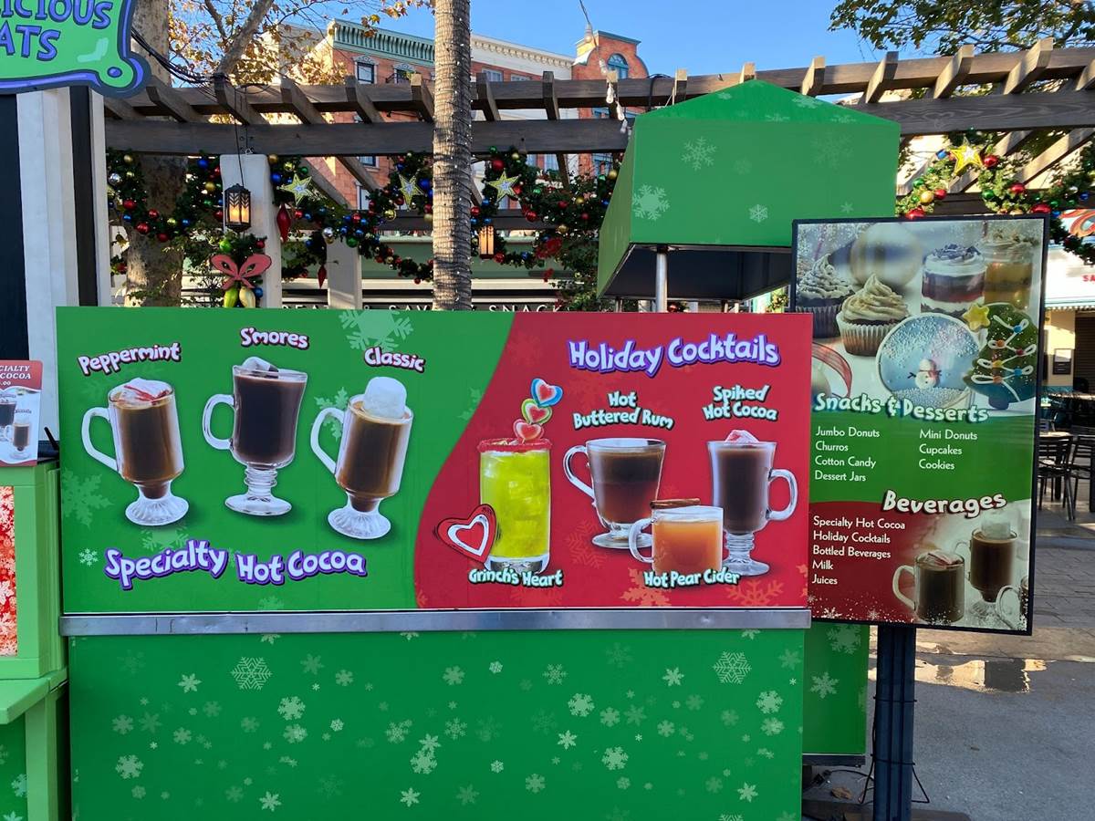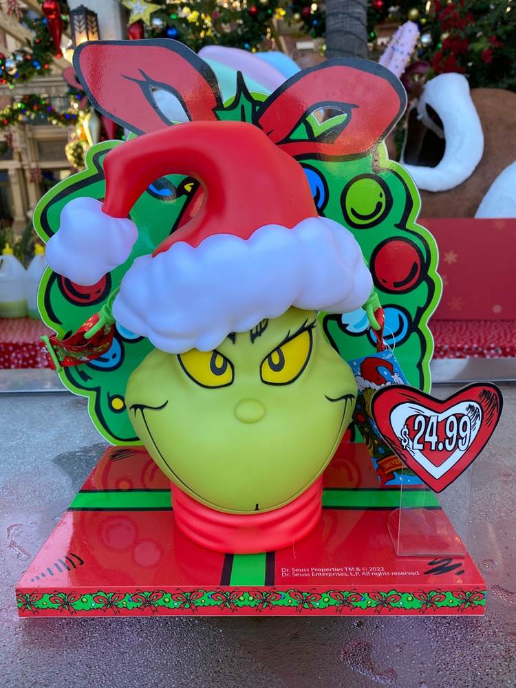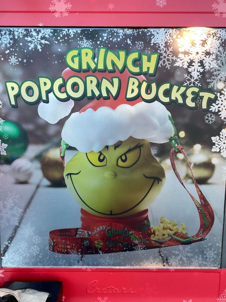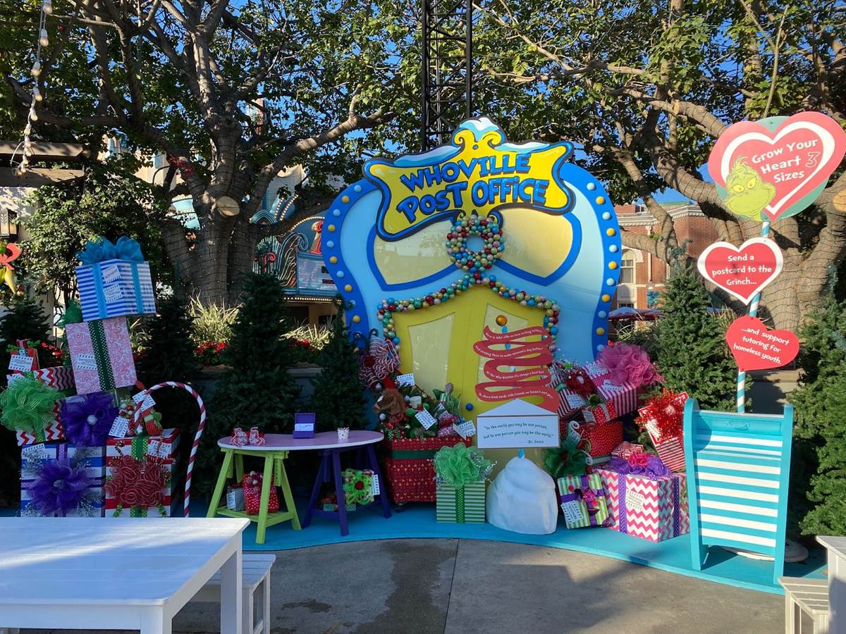 Inside the theme park, Universal Plaza is decked out for the Wholiday with plenty of Grinchmas flair. There’s a Grinch snowman, helpful signage, a Whoville post office where guests can send postcards to the Grinch, and a number of food kiosks and merchandise stands where tasty treats and souvenirs are available. There’s also a Grinch popcorn bucket and Grinch-shaped cotton candy.