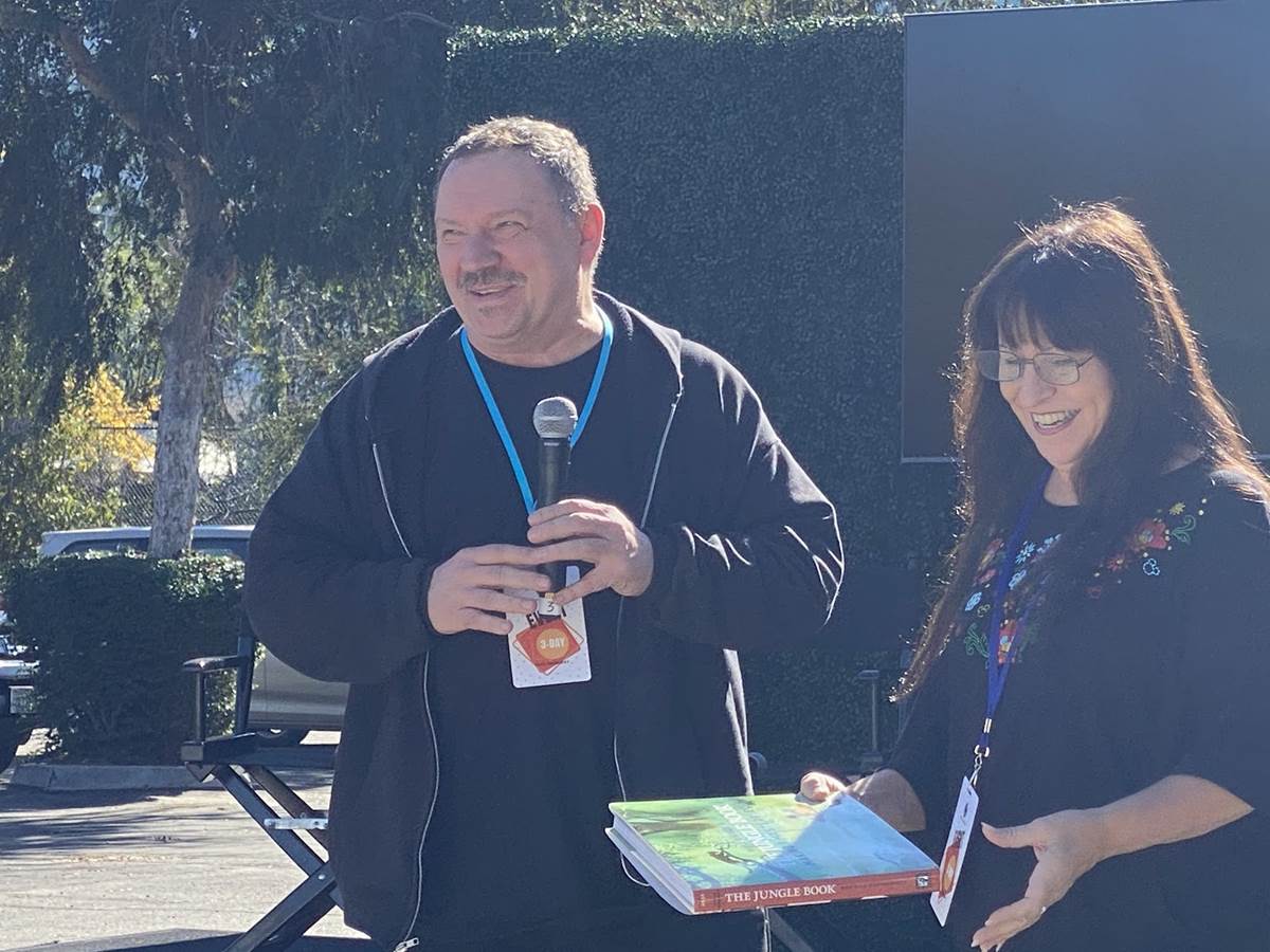 Deja and Norman also regaled the intimately small crowd with a fun story supported by Norman’s own experience. Andreas asked him about something that he had originally heard from Ollie Johnston, when he asked him where he got the inspiration for the dance moves as seen in the film performed by Baloo, especially during “The Bear Necessities." According to Deja, and supported by Norman, the answer was Walt himself. Deja’s story recounts tales that Ollie would share with him that Walt would explain he should be dancing, and would dance in the hallways and story room himself, and Ollie just pulled those moves and animated them himself. Oddly fitting that in the last film that Walt Disney himself had a hand in, his hallway dance moves now appear forever.