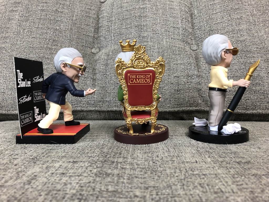 From left to right in the packaging are “The Red Carpet," “The King of Cameos" and “The Creator." Each is mounted to a shaped base that’s perfect for display in or out (gasp) of the box. “The Red Carpet" has Stan dressed in a white button down, black blazer and khakis. He’s standing in front of a stand-and-repeat that reads “The Stan Lee" (stylized like The Godfather), his signature and “The King Of Cameos." He poses with his right hand in a Spider-Man “thwip" position as if he’s about to sling a web.